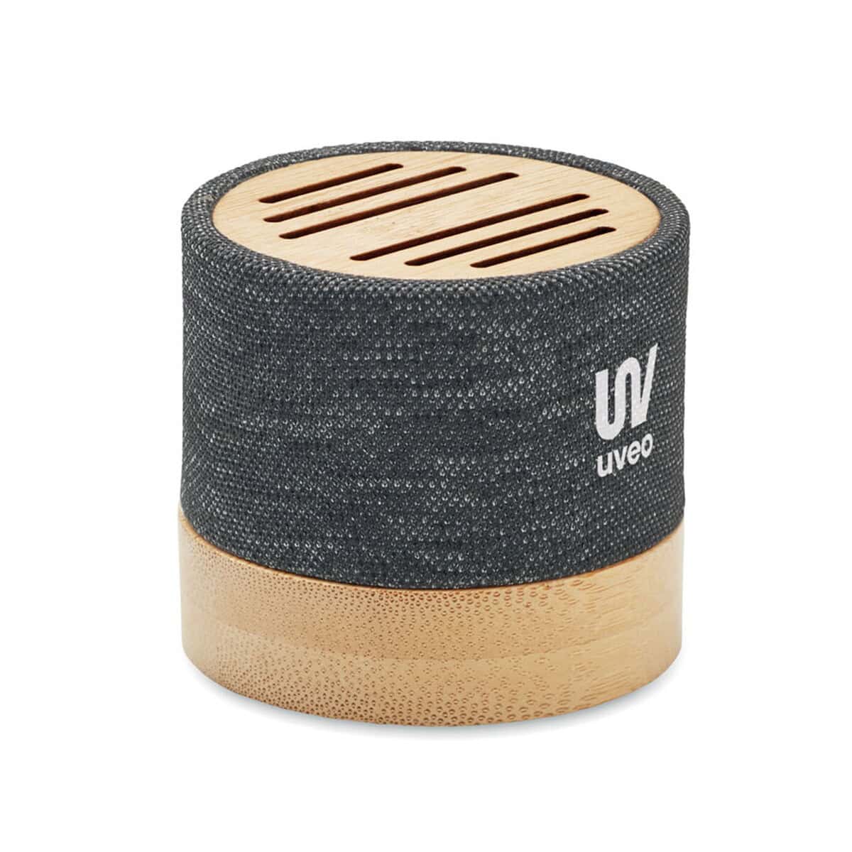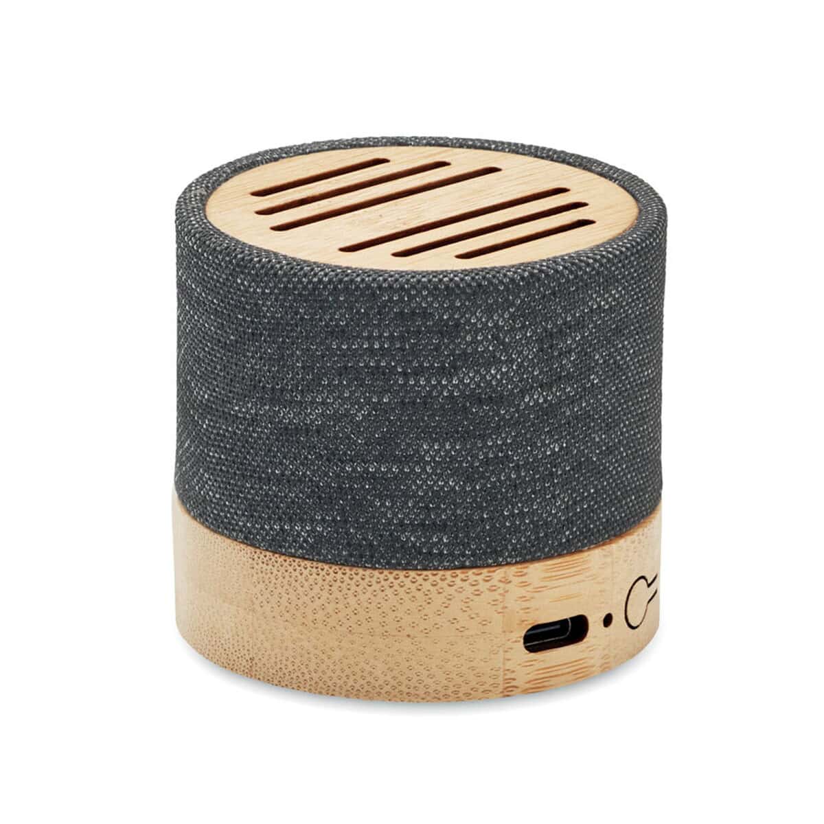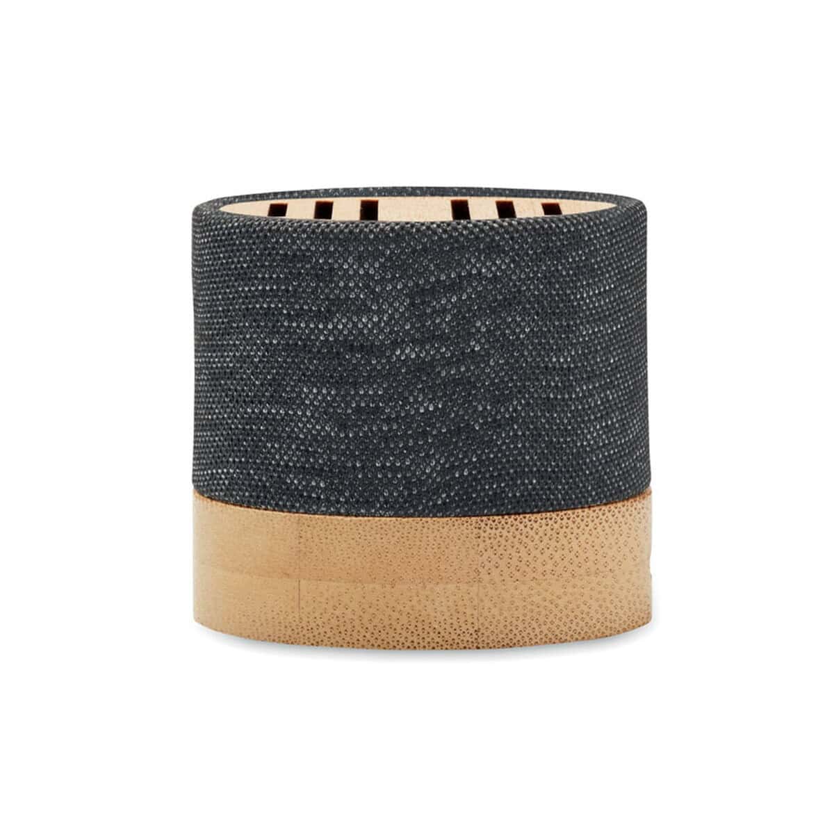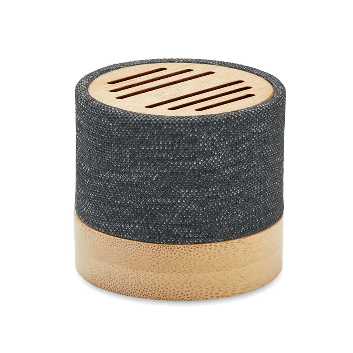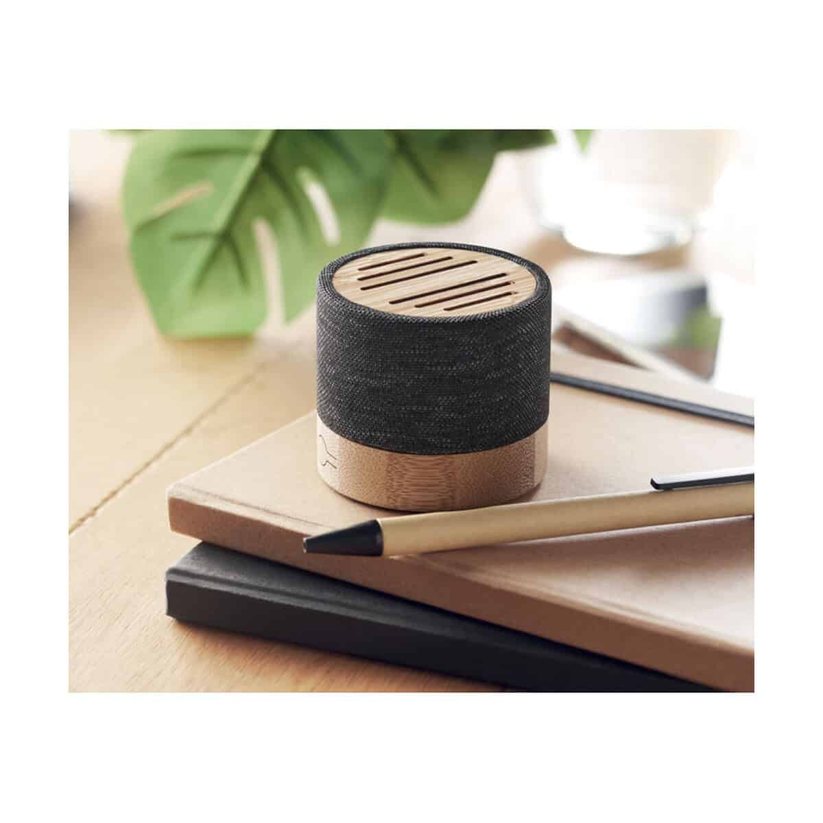 Głośnik bezprzew. RPET BOOL to znakomity, ekologiczny gadżet, który łączy nowoczesną technologię Bluetooth 5.0 z naturalnym pięknem bambusa 🎵. Średnica 6,1 cm, wysokość 5,3 cm oraz waga zaledwie 150 g sprawiają, że urządzenie bez trudu zmieści się w dłoni, torbie lub plecaku i będzie niezawodnym towarzyszem zarówno w biurze, jak i w plenerze. Obudowa z RPET oraz drewniany akcent podkreślają troskę o środowisko, a subtelna sygnalizacja LED informuje o statusie pracy.