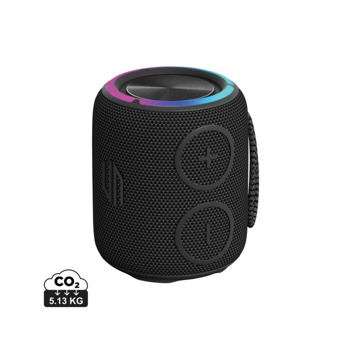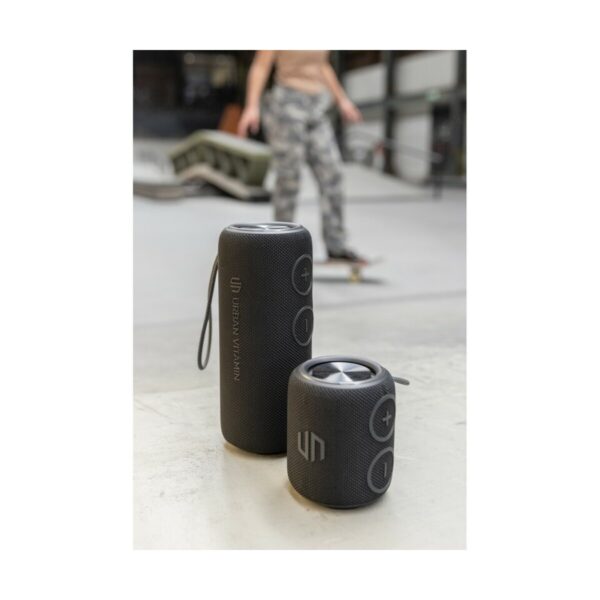 Zintegrowany uchwyt ułatwia przenoszenie, a dzięki moźliwości parowania dwóch głośników możesz cieszyć się dźwiękiem stereo, co jest idealne na większe imprezy czy spotkania. Oferuje on do 10 godzin odtwarzania muzyki na jednym ładowaniu, co zapewnia długotrwałe wsparcie muzyczne bez potrzeby ciągłego ładowania. Urban Vitamin Palmdale jest wykonany z odzyskanego ABS i PET, co potwierdza zaangażowanie w ochronę środowiska, a jego zminimalizowany ślad węglowy to dodatkowy atut.