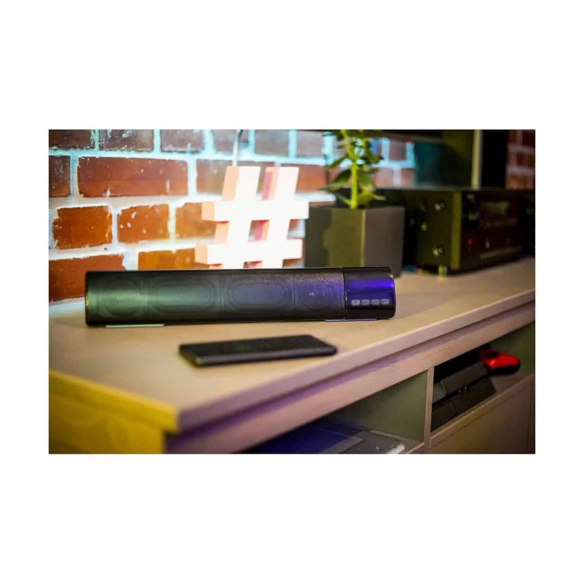 Głośnik bezprzewodowy 2x5W | Gabriel to nowoczesny, kompaktowy i niezwykle stylowy sprzęt audio, który natychmiast przyciąga uwagę swoim eleganckim, czarnym wykończeniem. Dzięki wymiarom 40 x 5 x 6,5 cm bez trudu zmieści się w torbie, plecaku czy na biurku, stając się niezastąpionym towarzyszem zarówno w pracy, jak i w czasie wolnym 😊. Ten model doskonale sprawdzi się jako gadżet promocyjny dla branży technologicznej, eventowej, turystycznej czy fitness, oferując wysokiej klasy brzmienie i szerokie możliwości personalizacji.