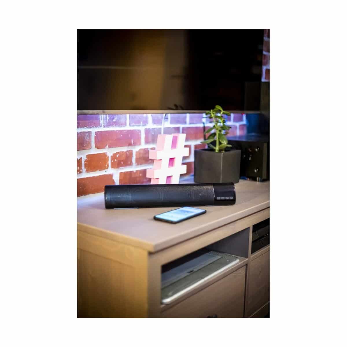 Matowa obudowa z plastiku i metalu tworzy solidną powierzchnię pod nadruk lub logo. Indywidualizacja sprawia, że gadżet staje się unikalnym nośnikiem przekazu dla Twojej firmy. Zachwyca nie tylko wyglądem, lecz także funkcjonalnością – idealnie nagłośni prezentacje, umili czas w hotelu czy podkręci atmosferę na stoisku targowym.