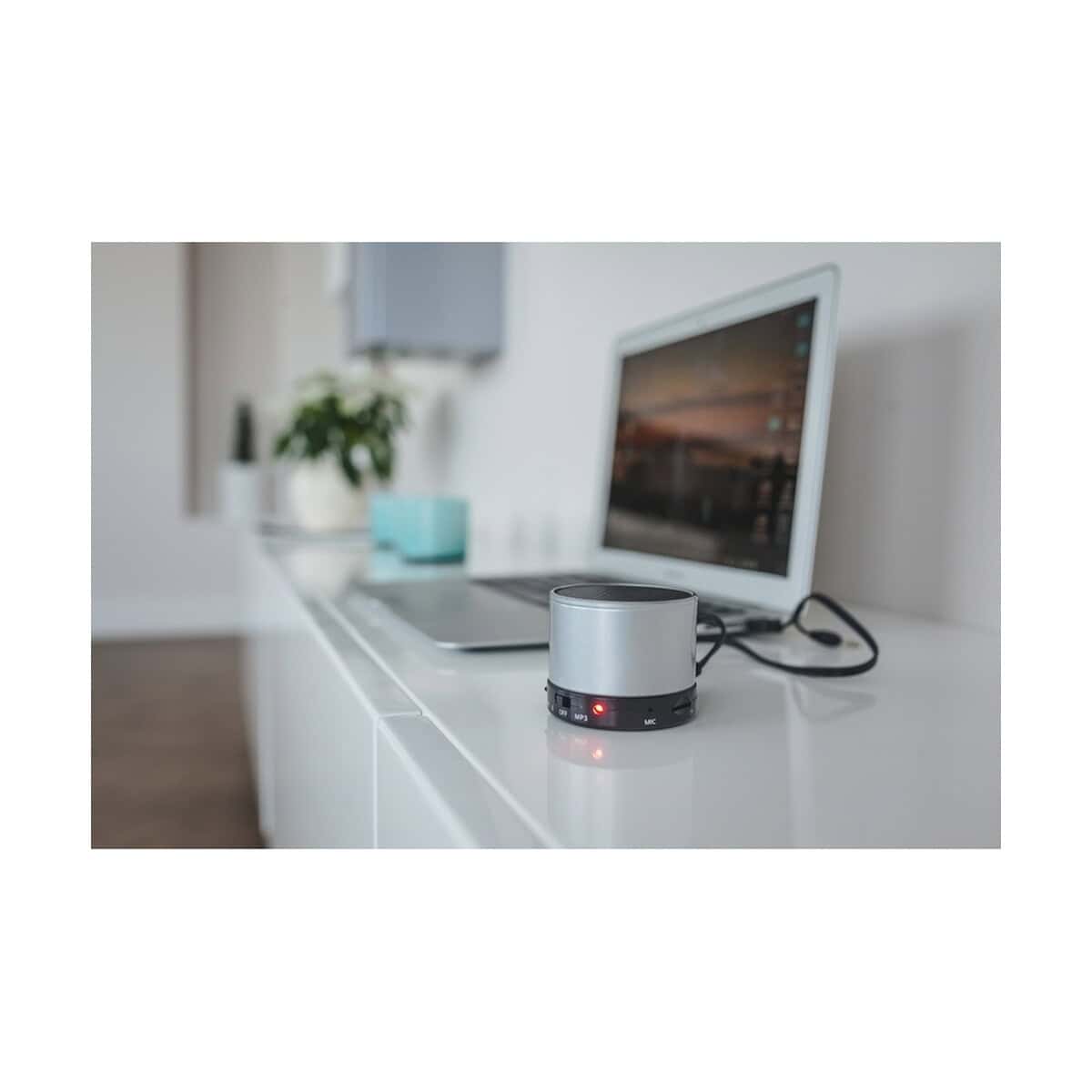 Dzięki funkcji odbierania połączeń i wbudowanemu mikrofonowi głośnik staje się praktycznym akcesorium do biura, co docenią pracownicy pracujący zdalnie. Czytnik kart TF/micro SD zamienia go w samodzielne centrum rozrywki, dlatego doskonale sprawdzi się na wyjazdach służbowych, piknikach czy targach. Umieszczone na nim firmowe logo i spersonalizowany nadruk utrwalą markę w świadomości odbiorców podczas każdego odsłuchu.
