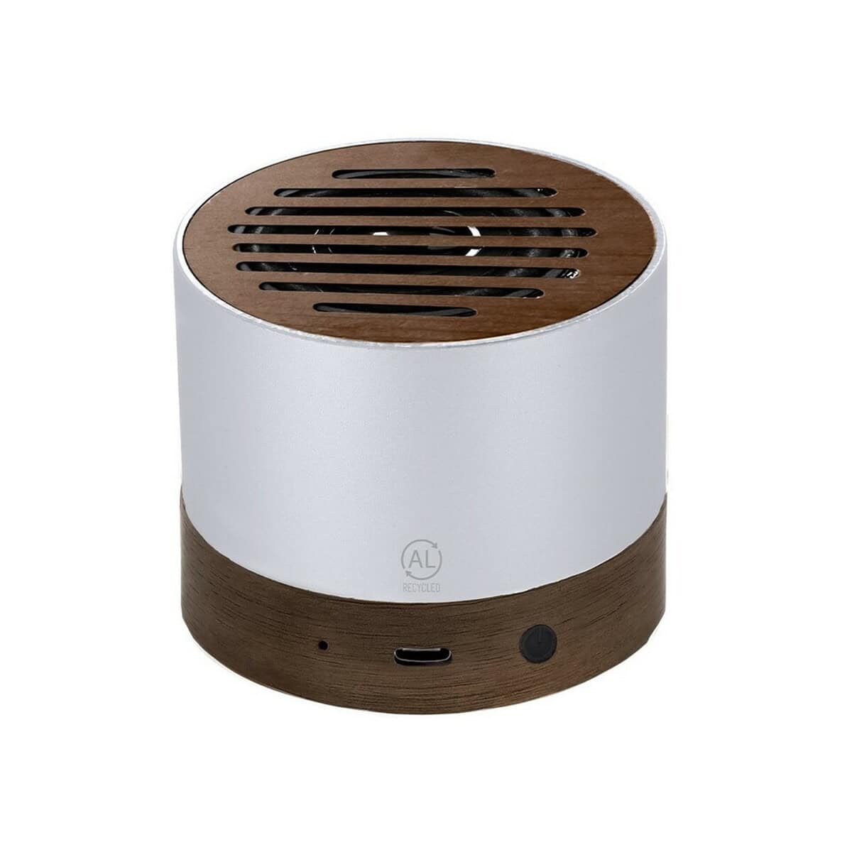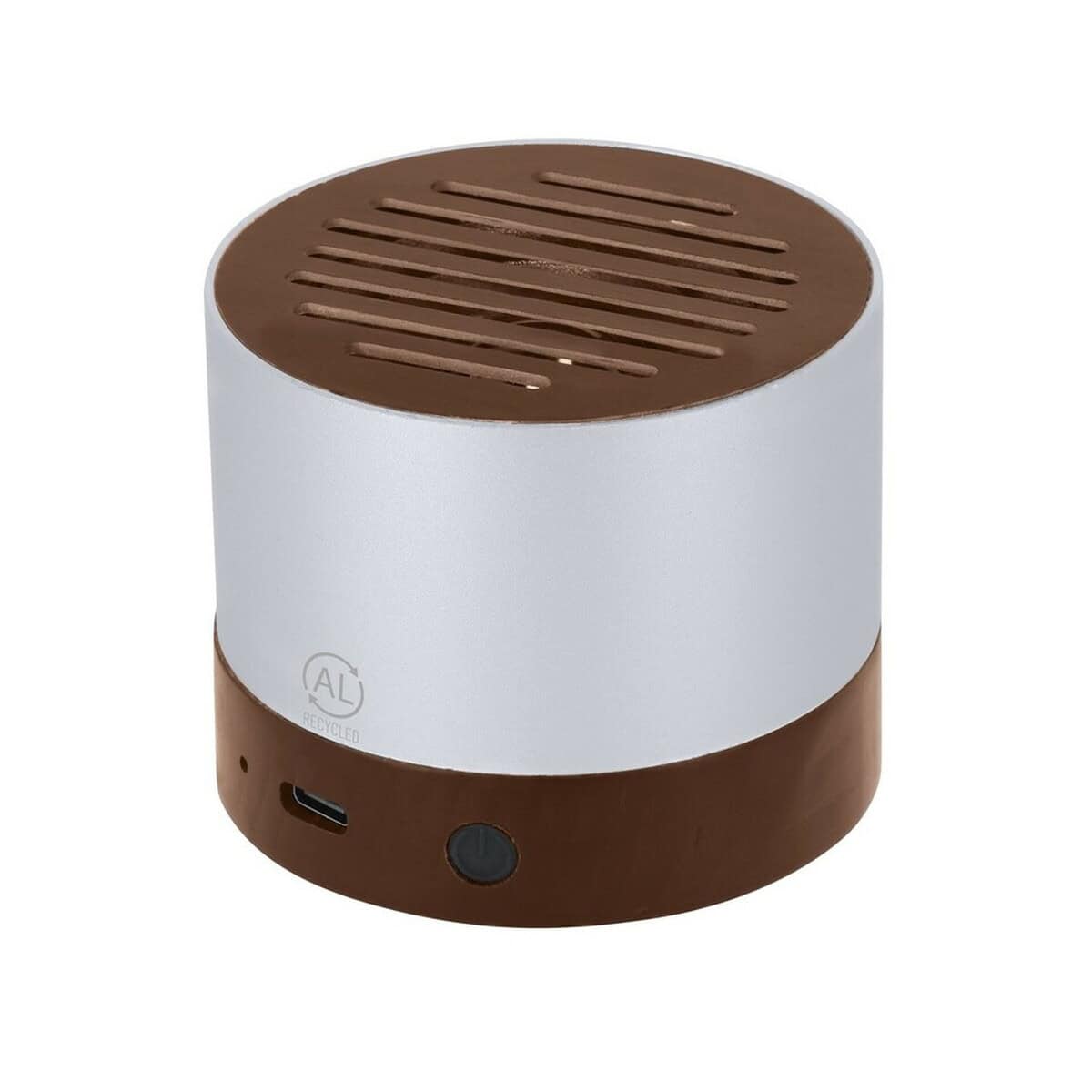 Głośnik bezprzewodowy 3W z aluminium z recyklingu to nowoczesny gadżet, który łączy ekologię z wysoką jakością dźwięku. Wykonany z aluminium z odzysku oraz eleganckiego drewna, wpisuje się w światowy trend zrównoważonej produkcji, co potwierdza certyfikat GRS (Global Recycled Standard). Dzięki kompaktowym wymiarom Ø7 x 6 cm i masie zaledwie 130 g świetnie mieści się w dłoni, plecaku czy torbie na laptopa, pozostając zawsze pod ręką, gdy chcesz cieszyć się ulubioną muzyką 🎵.