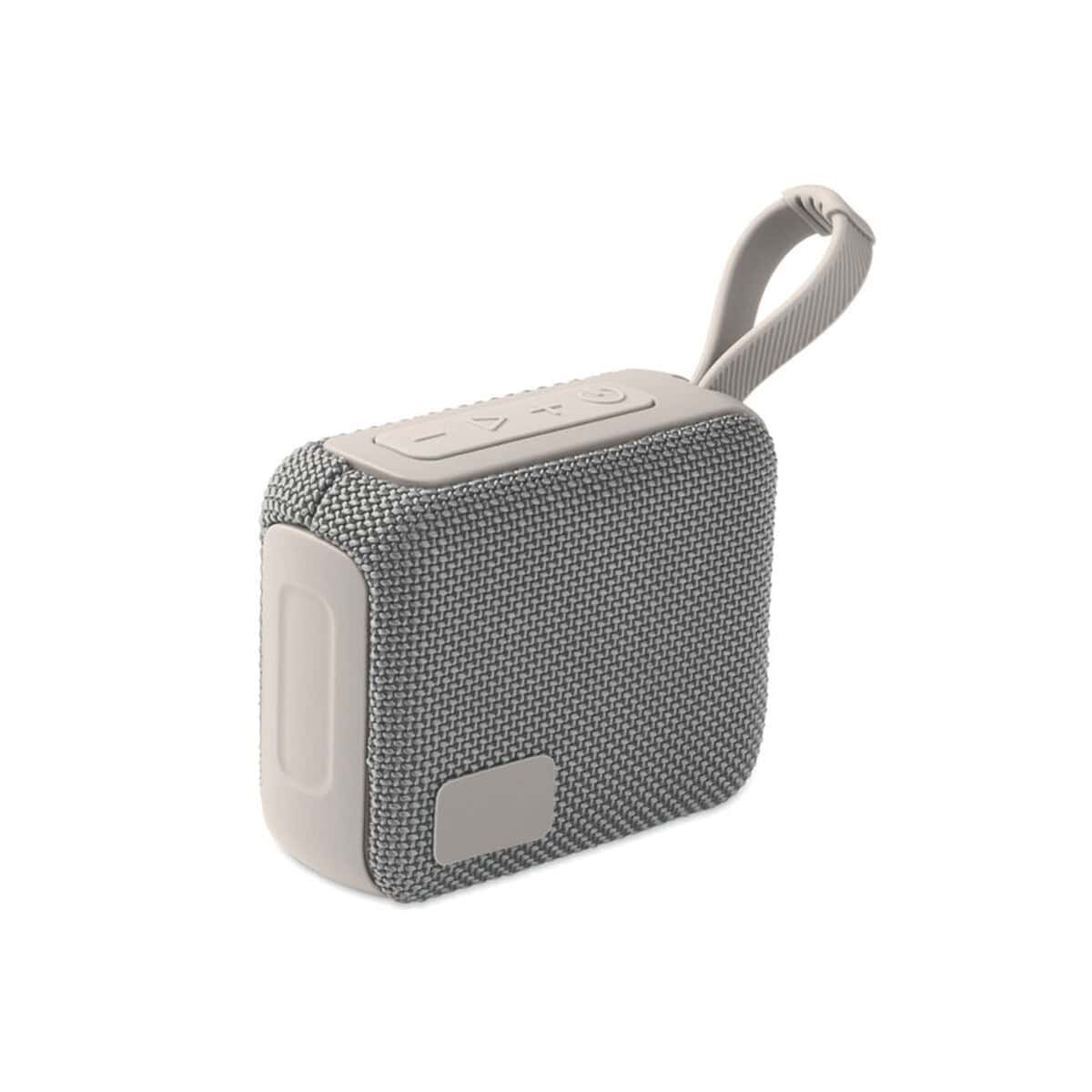Obudowę wykonano z trwałego ABS i pokryto elegancką tkaniną RPET, pochodzącą z recyklingu, co dodatkowo podkreśla proekologiczny charakter urządzenia. Funkcjonalność zwiększa praktyczny sznurek do zawieszenia oraz port karty SD i dołączony kabel AUX/USB. Wymiary 9,5 × 4 × 7,5 cm przy wadze zaledwie 0,22 kg sprawiają, że głośnik mieści się w każdej torbie konferencyjnej. Cztery warianty kolorystyczne – szary, czarny, turkusowy i czerwony – ułatwią dopasowanie do barw firmowych.