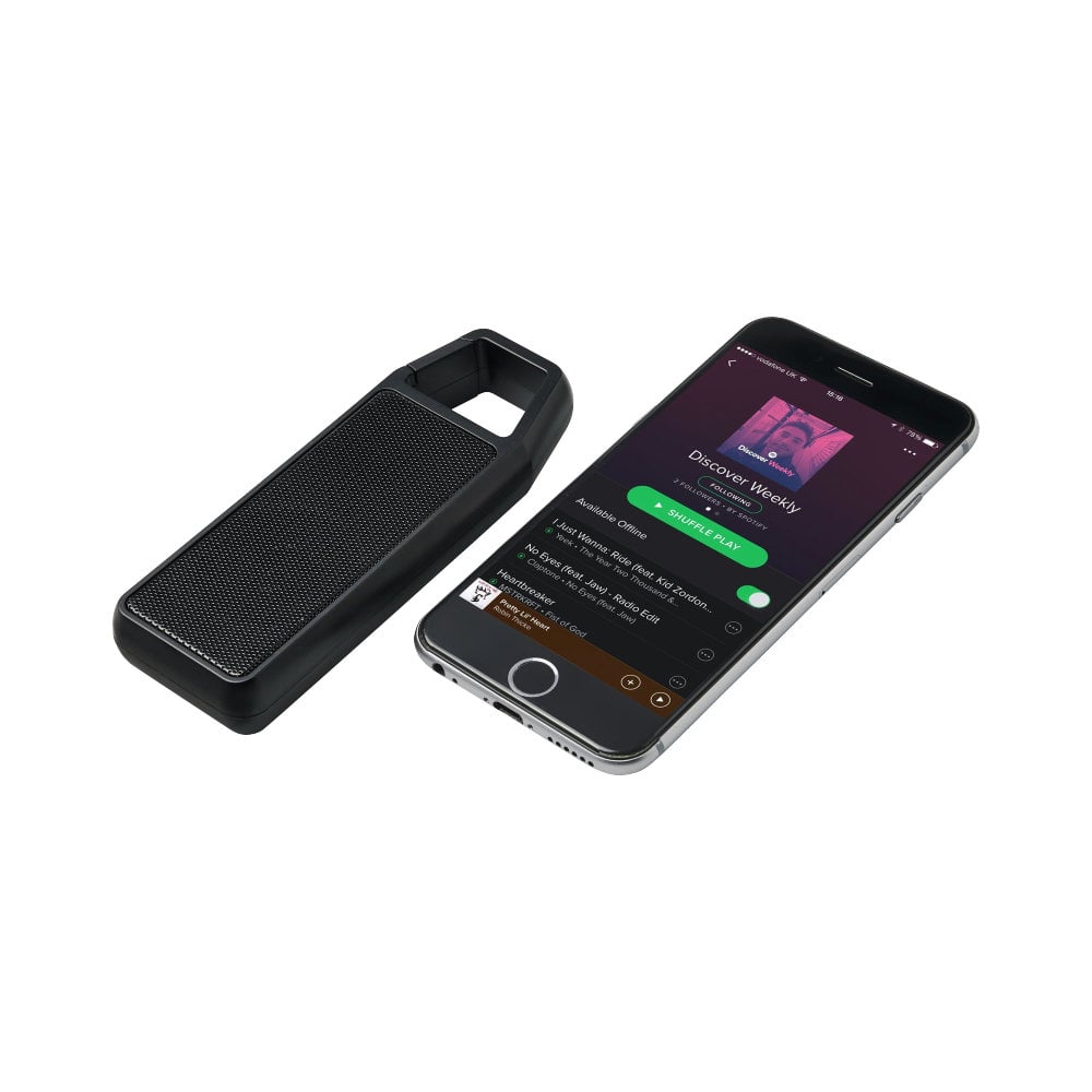 Ten mały i wytrzymały głośnik Bluetooth® oferuje wysoką jakość dźwięku w poręcznym formacie. Może odtwarzać muzykę lub inne dźwięki z dowolnego urządzenia z funkcją Bluetooth®, a jego zasięg wynosi do 10 metrów (33 stóp). Posiada wbudowany klips, który pozwala na łatwe przenoszenie głośnika wraz z Tobą w każde miejsce. Po naładowaniu możesz cieszyć się do 1,5 godziny muzyki przy maksymalnej głośności. Ładowanie trwa około 1,5 godziny, a zestaw zawiera kabel ładujący Micro USB oraz wbudowany mikrofon.