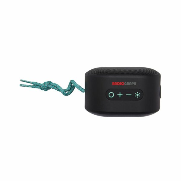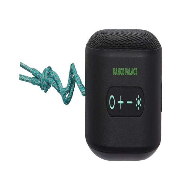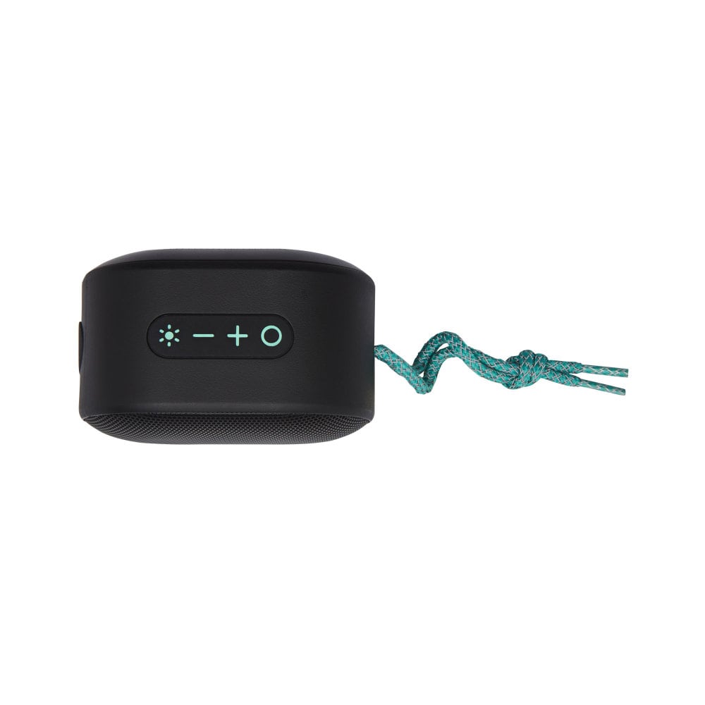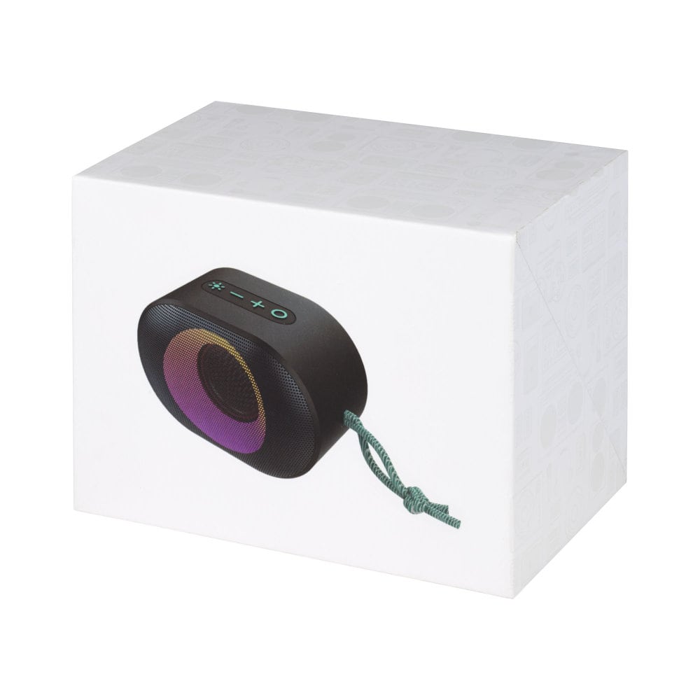 Potężny głośnik bezprzewodowy o mocy 7W z certyfikatem IPX6 idealnie nadaje się do aktywności na świeżym powietrzu, takich jak piknik, grill, plaża czy impreza na basenie. Posiada wbudowany akumulator o pojemności 1500 mAh, dzięki któremu może działać aż do 4,5 godzin przy maksymalnej głośności i włączonym nastrojowym oświetleniu RGB. Łączy się w technologii Bluetooth® 5.0 o zasięgu do 10 metrów, a wbudowany mikrofon i funkcja odbierania pozwalają na sterowanie bez użycia rąk. Dodatkowo, głośnik wyposażony jest w gniazdo AUX oraz slot na kartę TF (karta nie jest dołączona do zestawu). Sprzedawany w ozdobnym pudełku upominkowym.