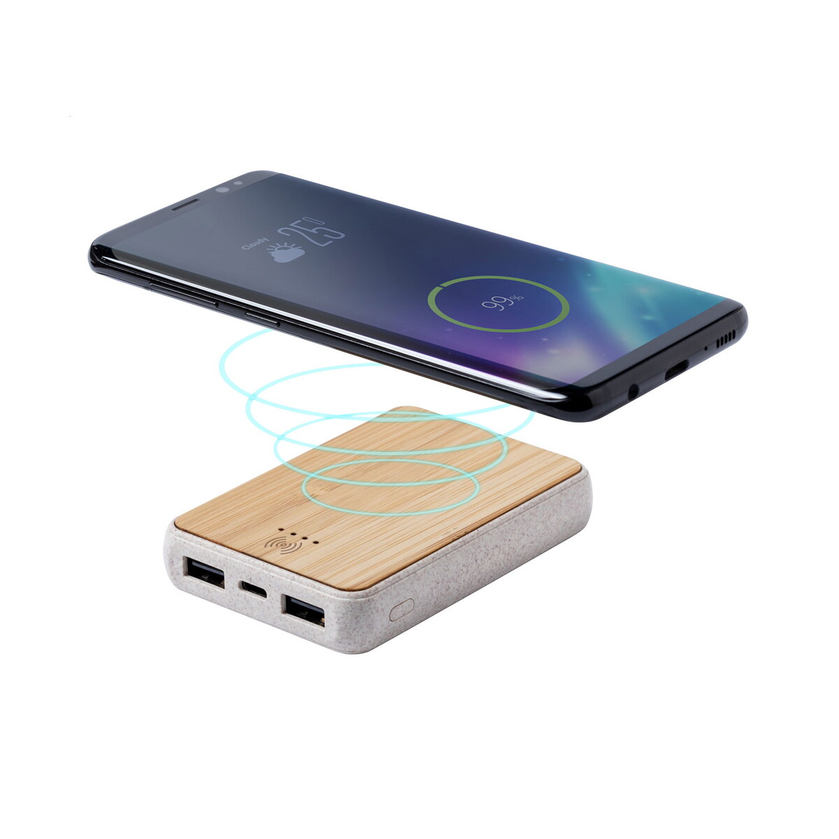Gorix power bank to nowoczesny i przyjazny środowisku gadżet, który przyciąga wzrok wyjątkową obudową z połączenia bambusa i tworzywa z słomy pszenicznej. Dzięki pojemności 5000 mAh oraz wbudowanej ładowarce indukcyjnej 5 W zapewnia energię Twojemu smartfonowi zawsze wtedy, gdy najbardziej jej potrzebujesz 🔋. Jego kompaktowe wymiary 63×91×15 mm i niewielka waga 110 g sprawiają, że zmieści się w kieszeni, torebce czy plecaku – idealny towarzysz każdej podróży, spotkania biznesowego czy konferencji.