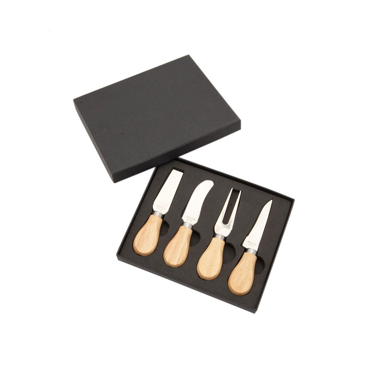Gouda zestaw noży do serów to wyjątkowy gadżet kulinarny, który sprawi, że każdy serowy poczęstunek nabierze profesjonalnego charakteru. Składa się z czterech precyzyjnie wyprofilowanych ostrzy ze stali nierdzewnej osadzonych w eleganckich, drewnianych uchwytach. Komplet zapakowano w stylowe czarne pudełko, dzięki czemu od razu nadaje się na upominek biznesowy 🎁. To idealne narzędzie dla Twojej firmy z branży gastronomicznej, winiarskiej, hotelarskiej czy eventowej – wszędzie tam, gdzie serwowanie serów i przekąsek jest częścią oferty.