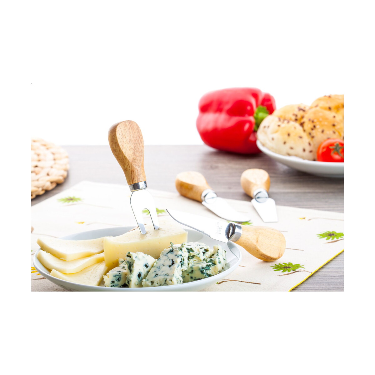 Komplet świetnie posłuży szefom kuchni, sommelierom, organizatorom cateringu, a także firmom produkującym sery, wina lub akcesoria do kuchni. Może być używany podczas codziennej pracy w gastronomii, w salach degustacyjnych czy w showroomach produktów spożywczych. Dzięki swojej poręczności i wyważeniu noże nadają się zarówno do twardych serów typu parmezan, jak i miękkich brie, gwarantując czyste, równe cięcia.