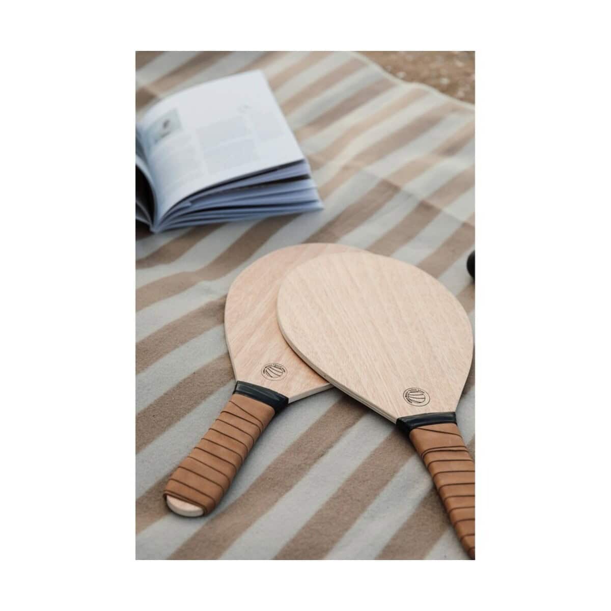 Gra zręcznościowa tenis VINGA Colos przenosi atmosferę letniego kortu na każdą plażę, trawnik czy firmowy event. W zestawie znajdziesz dwie drewniane rakiety o wymiarach 44 × 20 × 0,8 cm oraz dwie gumowe piłki, dzięki którym spontaniczny mecz możesz rozegrać dosłownie wszędzie. Całość zamyka praktyczny pokrowiec, ułatwiający transport i przechowywanie. Brązowe drewno w połączeniu z wytrzymałym PU prezentuje się stylowo, a jednocześnie zapewnia lekkość i trwałość – to naprawdę znakomity wybór dla aktywnych. 🎾
