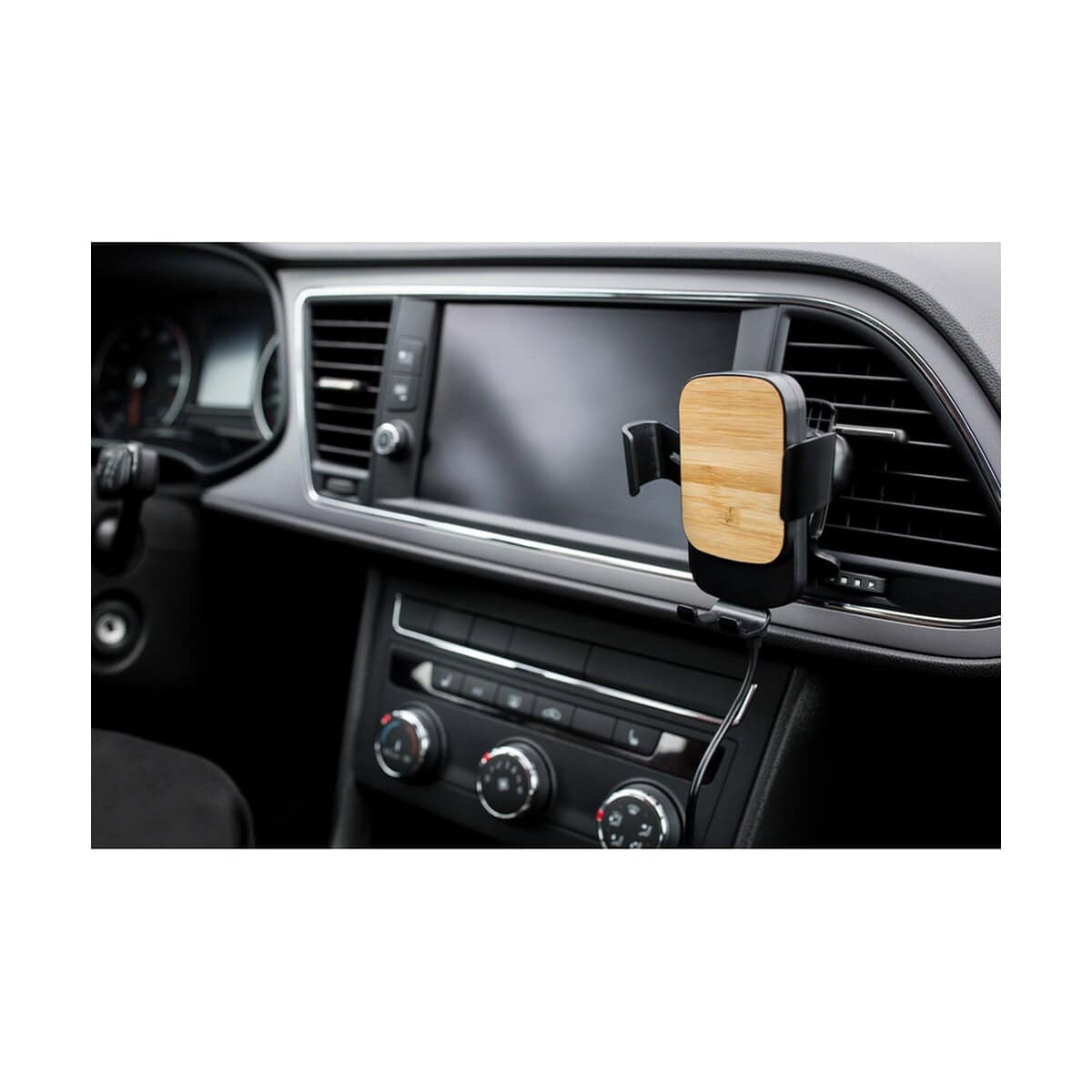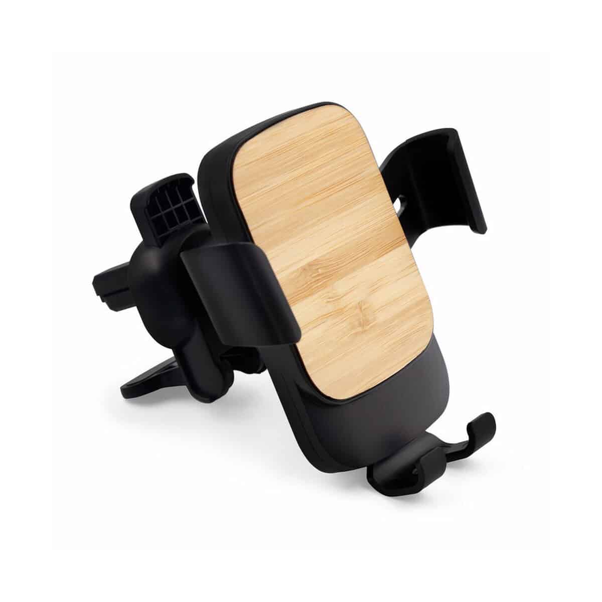 Solidna konstrukcja z ABS i naturalnego bambusa tworzy przyjazny środowisku akcent, który doskonale podkreśli logo oraz wybrany nadruk. Niewielka masa zaledwie 73 g i kompaktowe wymiary 10,3 × 9,2 × 5 cm czynią go łatwym w montażu na większości kratkach wentylacyjnych. Matowa, czarna powierzchnia pięknie kontrastuje z drewnianym elementem, przez co produkt staje się wyjątkowo widoczny jako reklamowy akcent w każdym pojeździe.