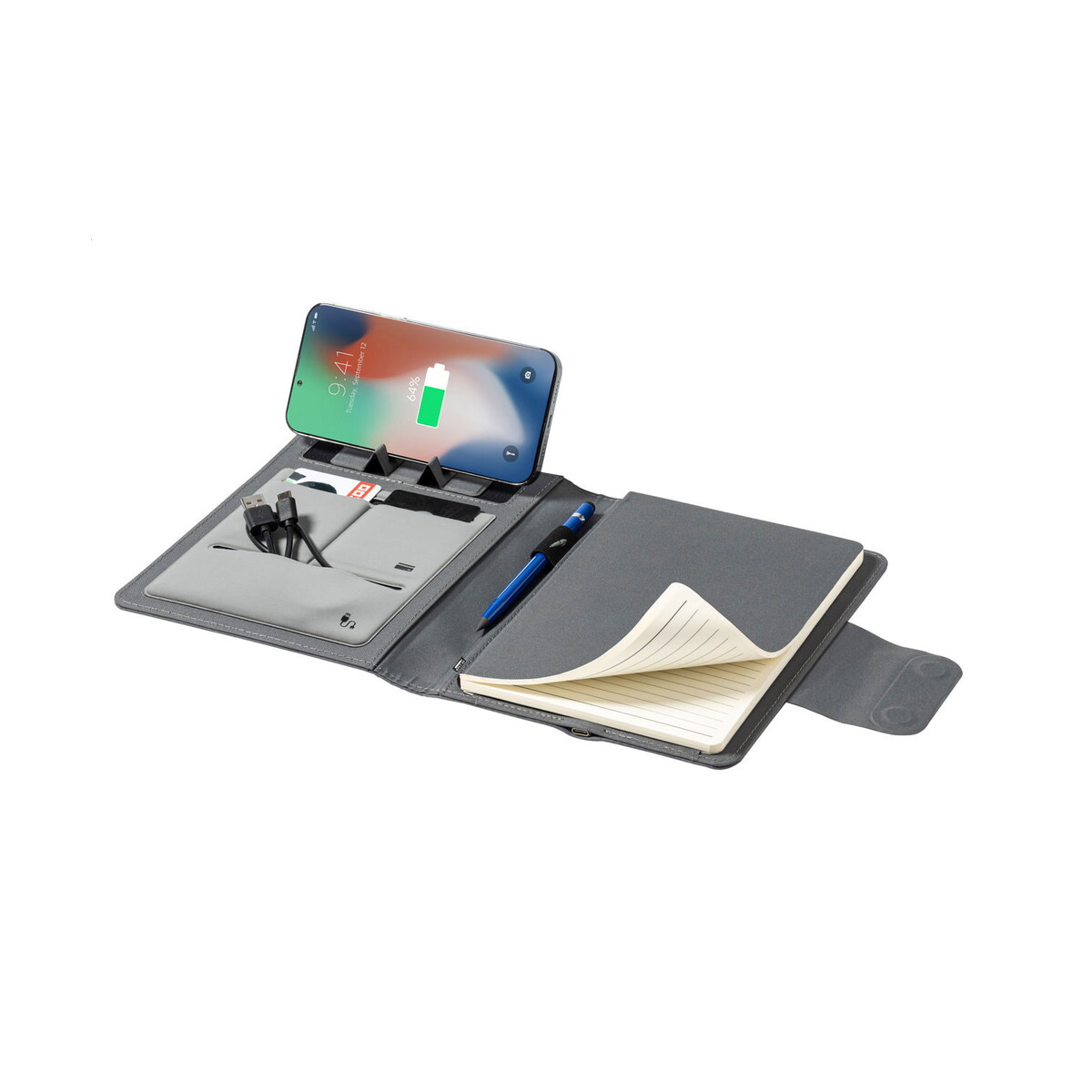 Ten multifunkcyjny gadżet to prezent, który doceni każdy manager, agent ubezpieczeniowy, konsultant sprzedaży, a także kreatywni freelancerzy i studenci MBA. Dzięki magnetycznemu pierścieniowi dołączonemu do zestawu folder jest kompatybilny z większością telefonów obsługujących Qi, co dodatkowo podnosi jego uniwersalność. Klienci i partnerzy poczują, że troszczysz się o ich komfort, otrzymując produkt, który naładuje telefon, zabezpieczy dokumenty i ułatwi notowanie.