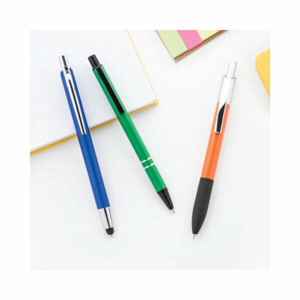 Ten aluminiowy długopis to mariaż funkcjonalności, wygody oraz nowoczesnego wzornictwa. Jego wygodny, gumowy uchwyt gwarantuje wygodę podczas długiego pisania. Metalowa końcówka zapewnia stabilne trzymanie długopisu w ręce i sprawia, że pisanie jest płynne i precyzyjne. Dodatkowo, długopis jest dostarczany z niebieskim wkładem, który gwarantuje wyrazisty i trwały kolor atramentu. Ten produkt z pewnością spodoba się wszystkim, którzy szukają długopisu idealnego do codziennego użytku.