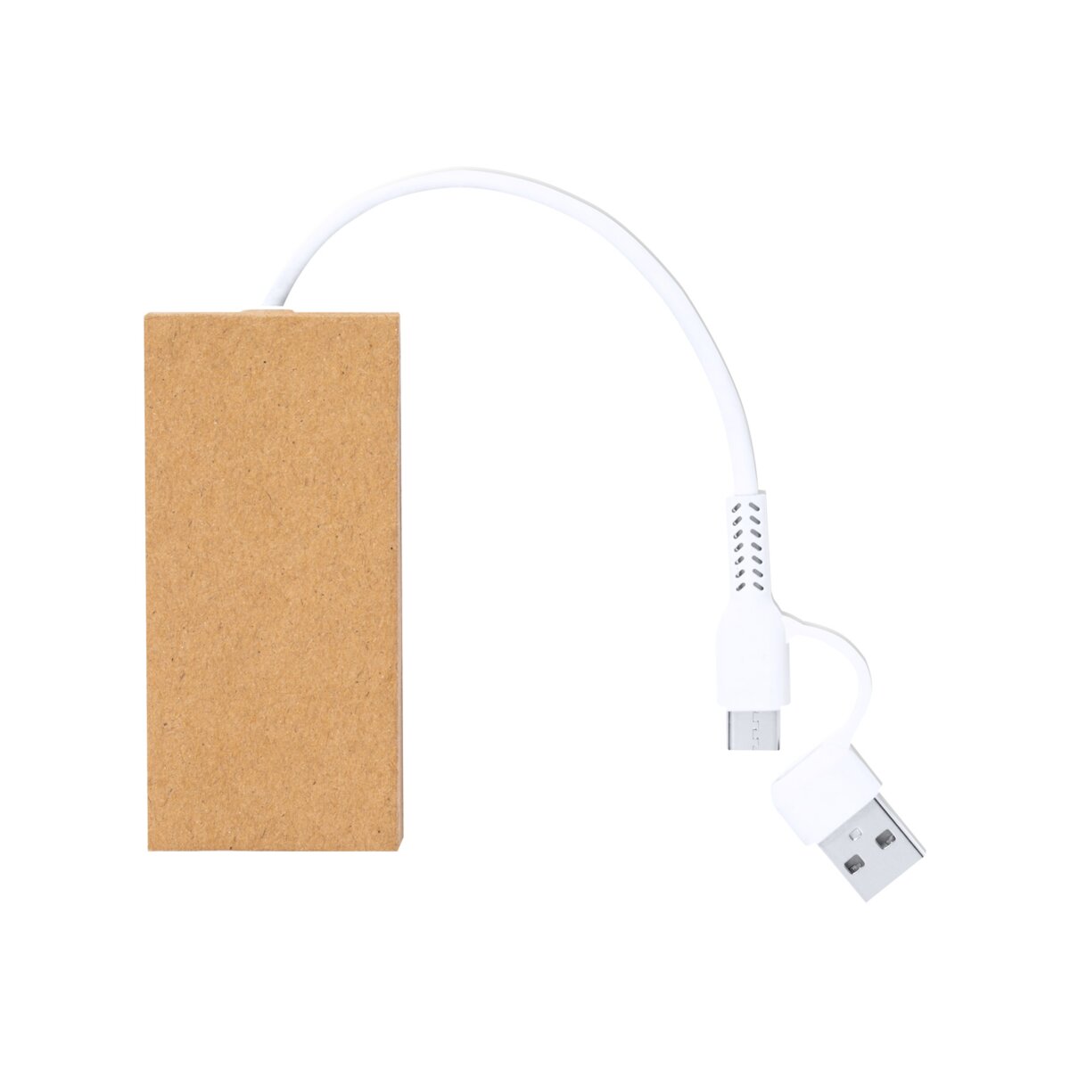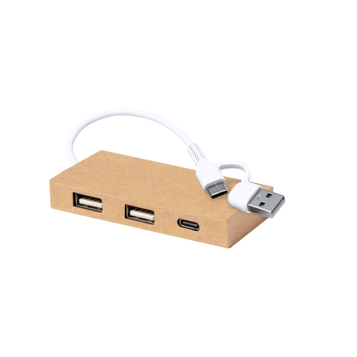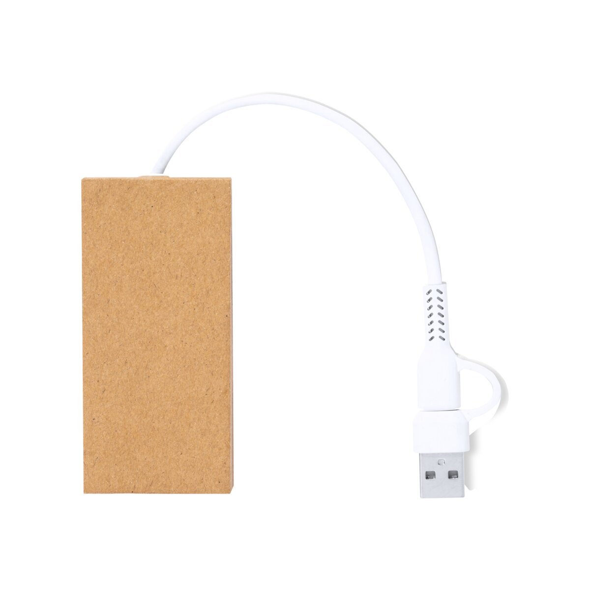 Hub USB z papieru z recyklingu wyposażony jest w 2 porty USB i 1 port USB-C, USB 2.0, dzięki czemu możesz podłączyć kilka urządzeń jednocześnie i cieszyć się szybkimi prędkościami przesyłu danych. Ponadto, został wyposażony w kabel ze złączami USB i USB-C, dzięki któremu możesz łatwo i szybko podłączyć do komputera urządzenia, takie jak dyski zewnętrzne, myszy, klawiatury, telefony i tablety.