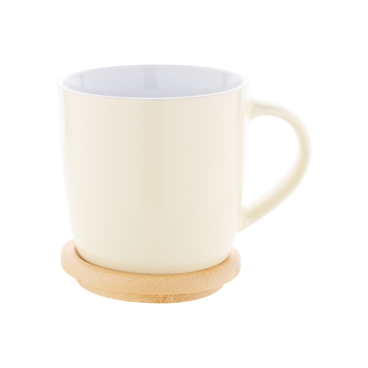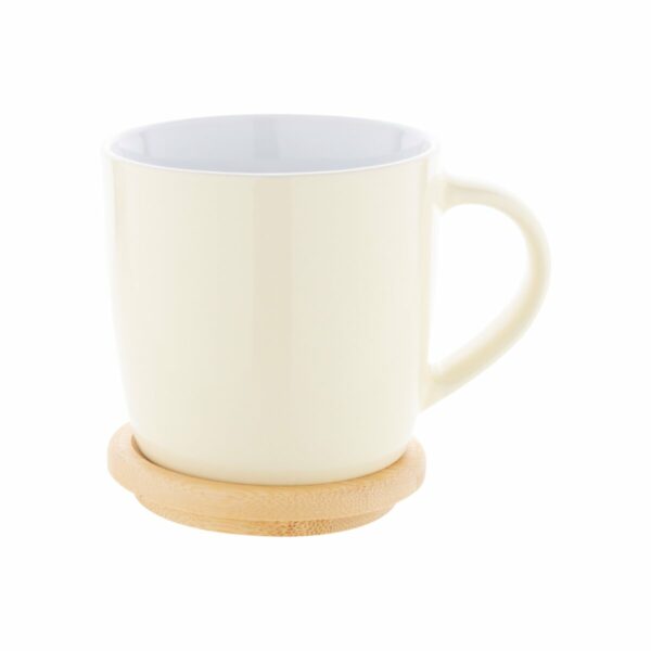Kubek ceramiczny z białym wnętrzem i podstawką wykonaną z naturalnego bambusa, to produkt wyjątkowy i z pewnością pokocha go każdy miłośnik pięknych, funkcjonalnych akcesoriów. Z pojemnością 335 ml, jest wystarczająco pojemny, aby zaspokoić potrzebę kofeinowego napoju.