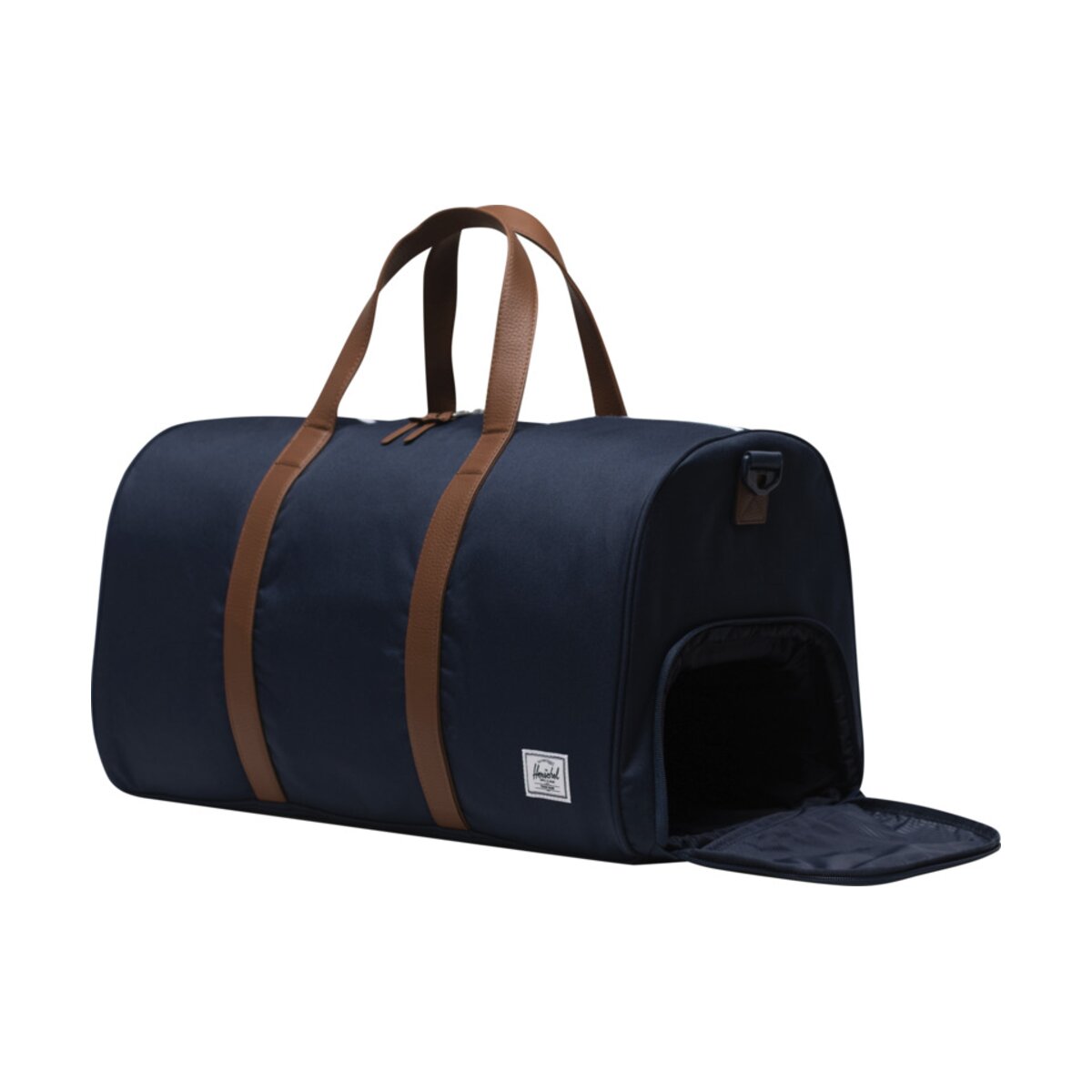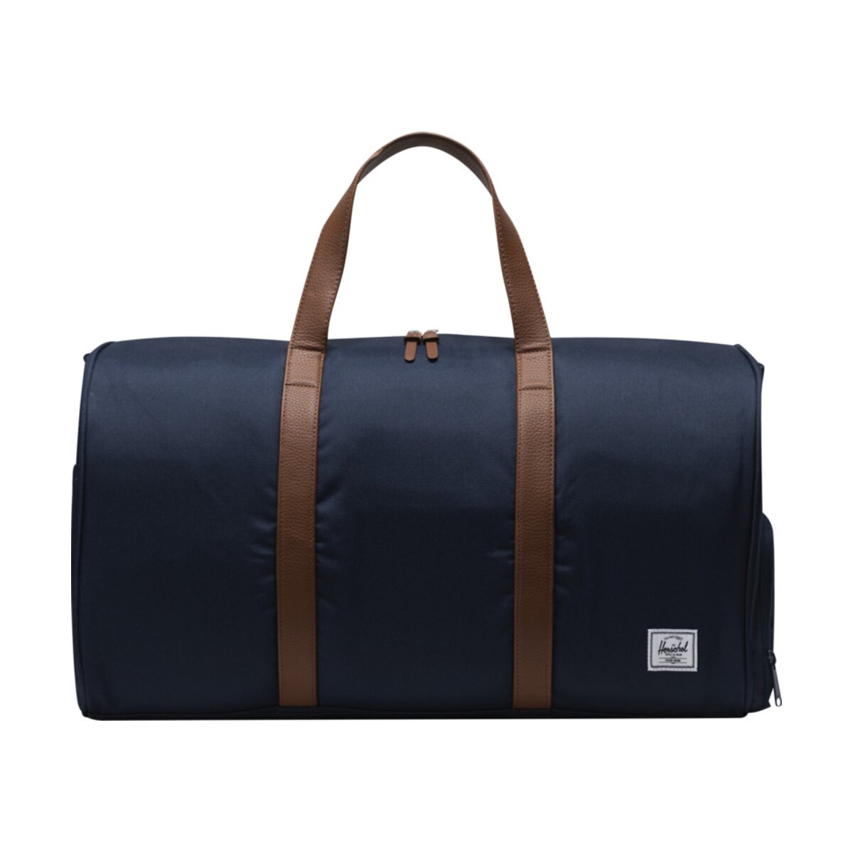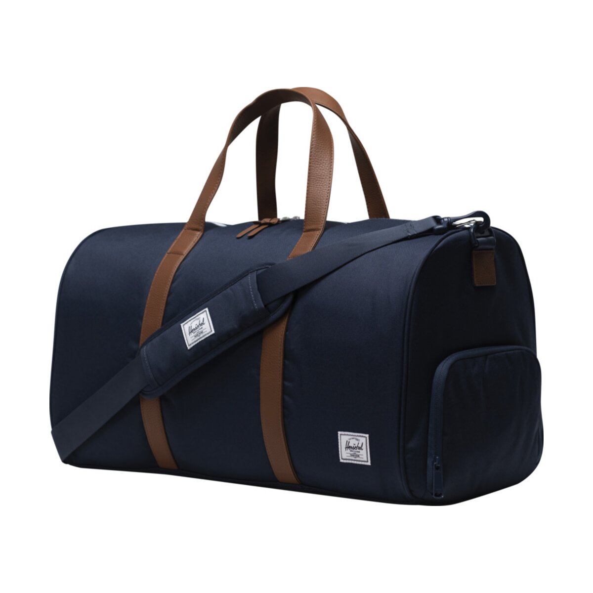 Szukasz idealnej torby podróżnej – torba podróżna Herschel Novel™ jest Twoja. Ta torba została zaprojektowana z myślą o trwałości i inteligentnej organizacji, posiada charakterystyczną przegrodę na buty, aby pomieścić niezbędną dodatkową parę. Wykonana w 100% z materiałów EcoSystem™ pochodzących z recyklingu doskonale mieści się w schowkach nad głową lub bagażnikach, dzięki czemu jest idealnym towarzyszem podróży. Materiał 600D został starannie wyprodukowany w 100% z przetworzonych poużytkowych butelek na wodę, a wodoodporne zapięcie na zamek błyskawiczny zapewnia ochronę cennych rzeczy. Ta torba podróżna została zaprojektowana z uchwytami ze skóry wegańskiej i odpinanym, gładkim paskiem na ramię z wyściółką EVA, by zapewnić wygodę noszenia. Torba podróżna Herschel Novel™ posiada również zewnętrzną kieszeń, która pomaga uporządkować rzeczy i zapewnia do nich łatwy dostęp. Dzięki pojemności 43 litrów ta torba podróżna jest najlepszym partnerem na kolejną przygodę.