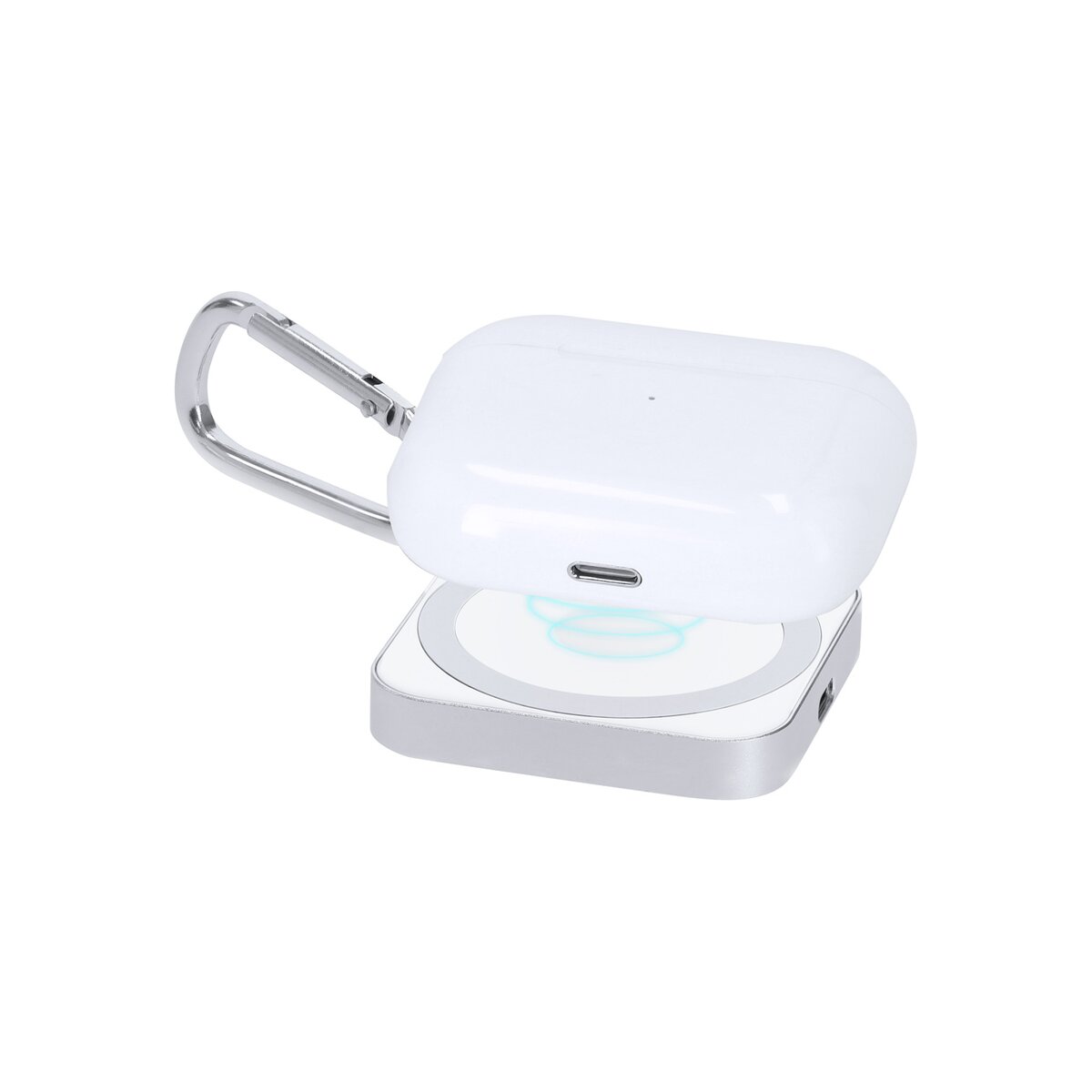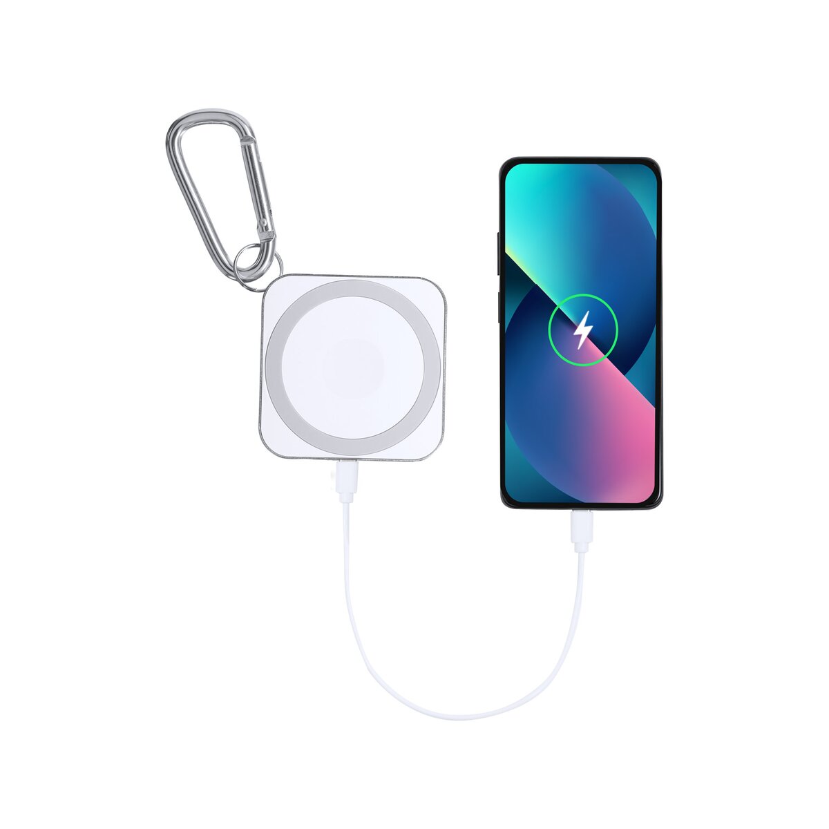 Obudowa ładowarki wykonana jest z wysokiej jakości aluminium, co nie tylko zapewnia jej trwałość, ale także nadaje elegancki, profesjonalny wygląd. Wygodny karabińczyk umożliwia łatwe przenoszenie, a dzięki kompaktowym rozmiarom (58×58×9 mm) nie zajmuje wiele miejsca. Urządzenie to dekorowane jest w kolorze białym, co dodatkowo potęguje jego estetyczny charm, idealnie pasując do każdego, nowoczesnego wnętrza.