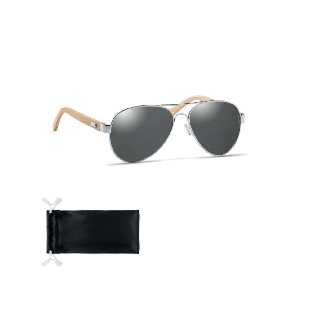 • Lustrzane okulary przeciwsłoneczne wykonane z plastiku PET z recyklingu/drewna Hiru z polaryzacją w pudełku upominkowym