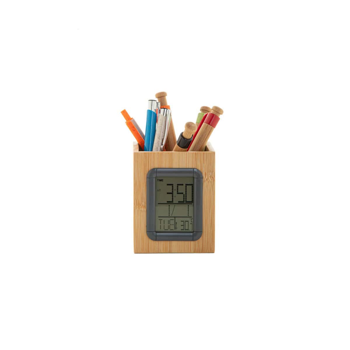Sercem stojaka jest wbudowany, cyfrowy zegar z szeregiem funkcji: budzik, kalendarz oraz termometr. Te praktyczne rozwiązania sprawiają, że Horubo wielofunkcyjny stojak na długopisy pełni rolę kompaktowego centrum dowodzenia na Twoim biurku, gwarantując punktualność, kontrolę nad harmonogramem i komfortową temperaturę otoczenia. Dołączona bateria guzikowa umożliwia błyskawiczne uruchomienie urządzenia — wystarczy je rozpakować i cieszyć się pełnią możliwości.
