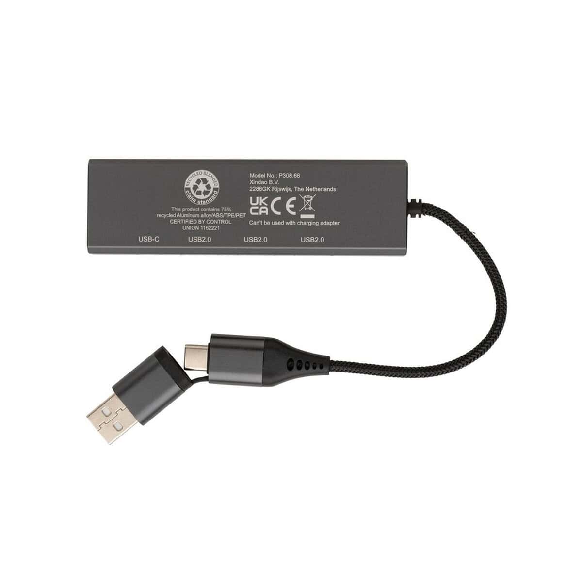 Hub USB 2.0 z USB C, aluminium z recyklingu