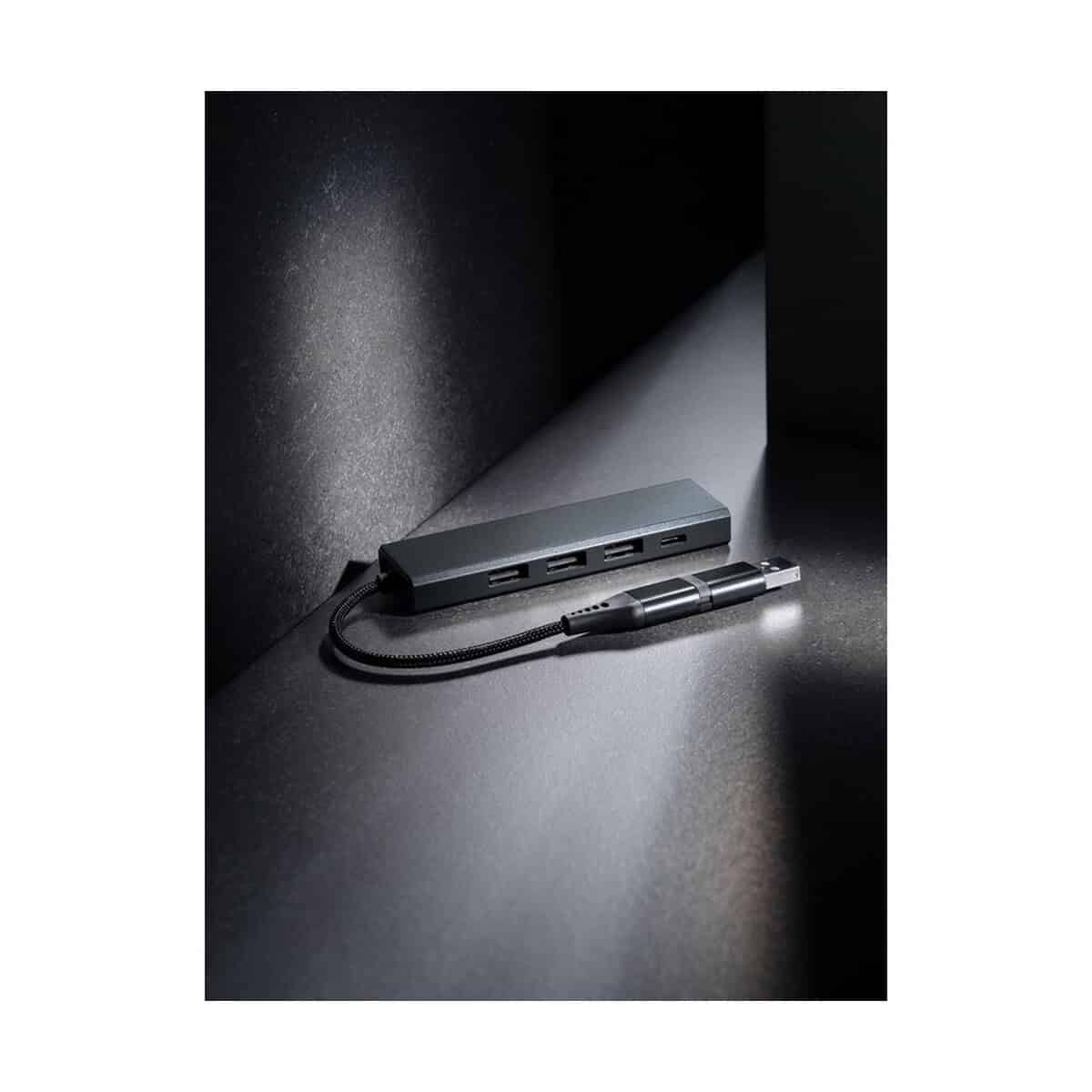 Do dyspozycji masz 3 porty USB 2.0 oraz 1 port USB-C obsługiwane przez elastyczny, 10-centymetrowy kabel z TPE/PET z recyklingu 🔌. Hub USB 2.0 z USB C, aluminium z recyklingu błyskawicznie zamieni jeden port w cztery, ułatwiając jednoczesne podłączenie myszy, klawiatury, pendrive’a czy smartfona. To rozwiązanie doskonałe dla grafików, programistów, studentów, a także mobilnych pracowników z branży IT, e-commerce czy marketingu.