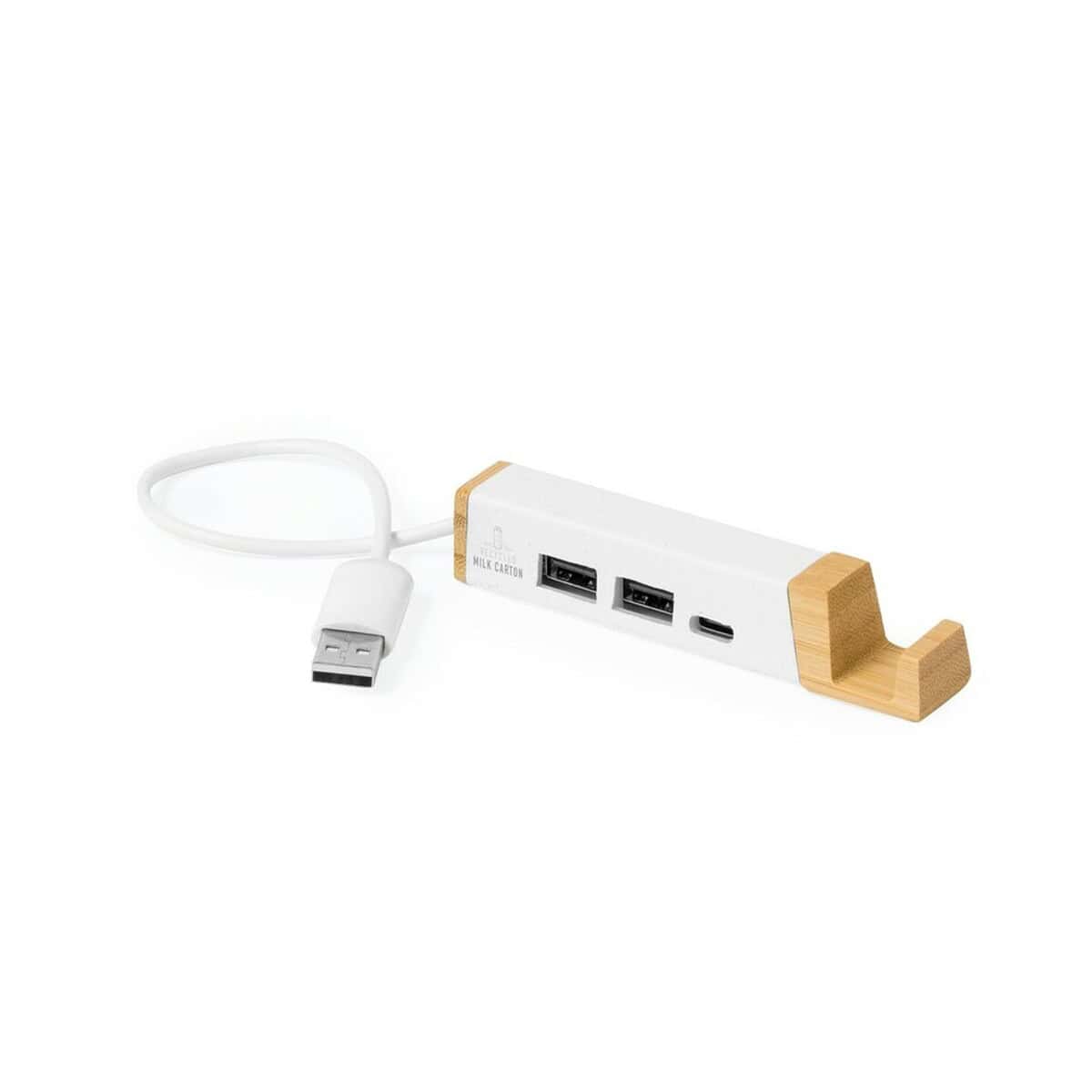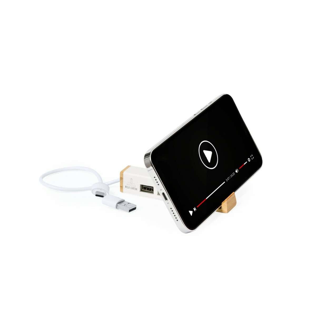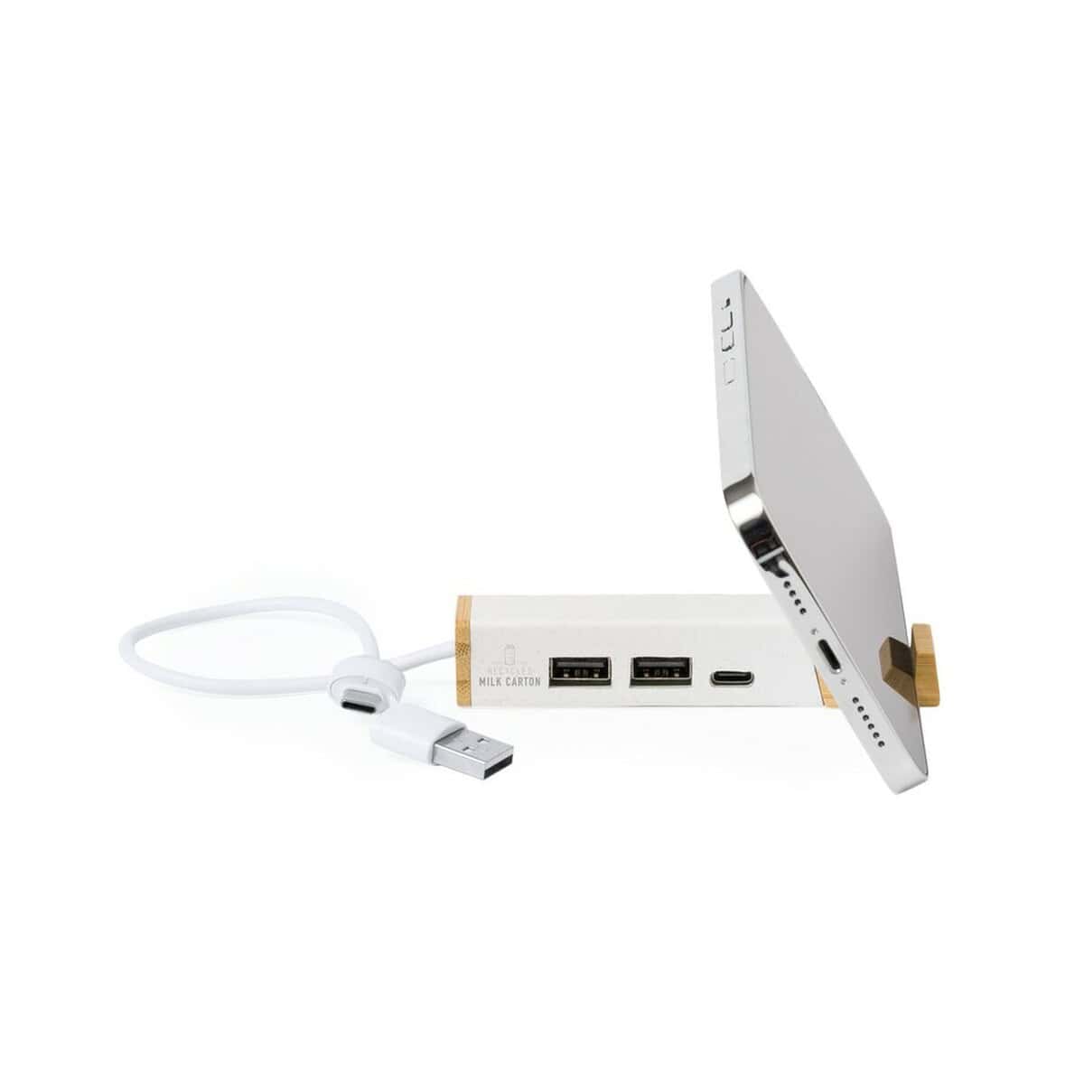 Hub USB i USB-C ze zrecyklingowanych kartoników po mleku, stojak na telefon