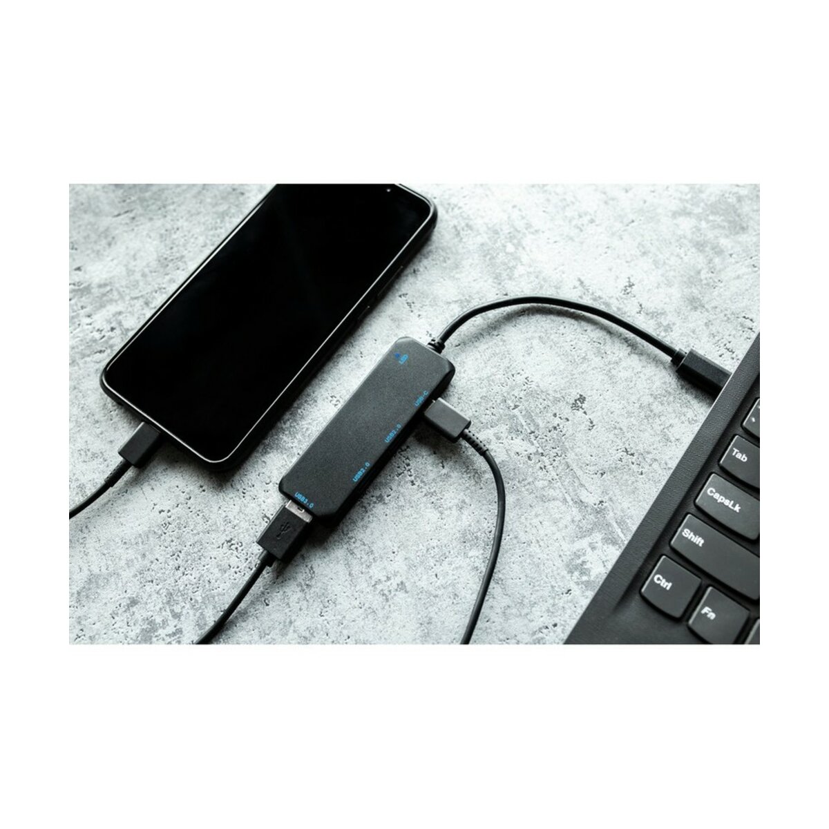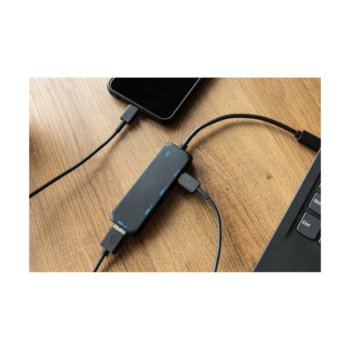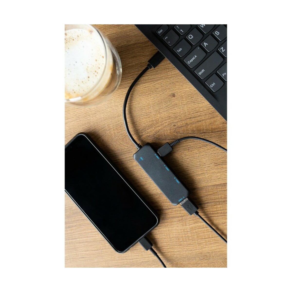 Hub z 2 portami USB 2.0, portem USB 3.0 i portem USB typu C – to urządzenie, które pozwoli Ci na bezproblemowe przesyłanie danych między urządzeniami zgodnymi z Androidem i iOS. Zostało wyposażone w obudowę wykonaną z RABS, a do tego w zestawie znajduje się zintegrowany kabel z końcówką USB typu C.