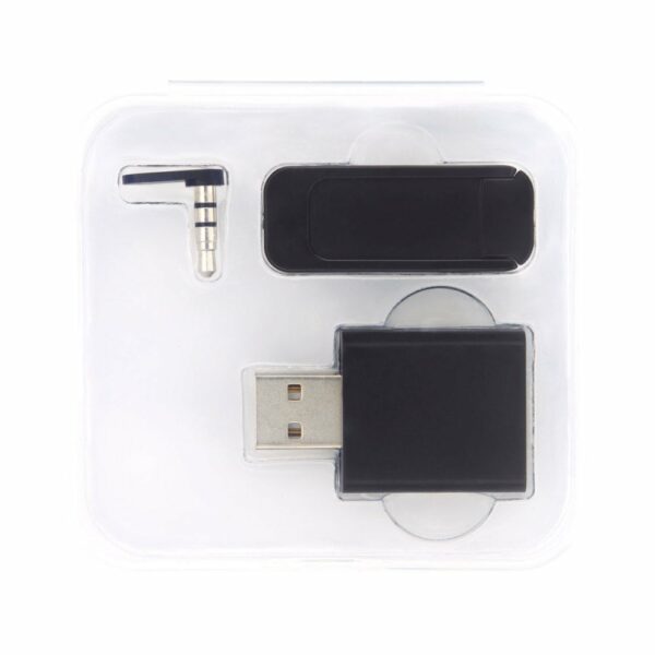 Ten zestaw do ochrony prywatności cyfrowej zawiera trzy elementy ochronne: blokadę transferu danych USB, blokadę kamery internetowej i blokadę gniazda audio. Blokada transferu danych USB zapobiega niepożądanemu przesyłaniu danych, gdy urządzenia są podłączone do komputera lub publicznej stacji ładowania. Blokada kamery internetowej chroni przed niechcianym dostępem do kamery internetowej laptopa. Blokada gniazda audio uniemożliwia podsłuchiwanie rozmów przez osoby trzecie. Wszystkie elementy są dostarczane w ochronnym etui.