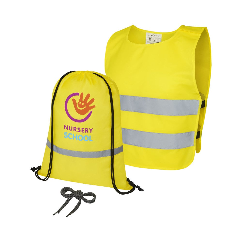 Kompletny zestaw bezpieczeństwa i widoczności dla dzieci w wieku od 7 do 12 lat składa się z odblaskowego plecaka ze sznurkiem, kamizelki bezpieczeństwa i zestawu odblaskowych sznurowadeł. Plecak posiada dużą komorę z zamknięciem na sznurek oraz został przetestowany i certyfikowany zgodnie z normą EN 1150:1999. Kamizelka w rozmiarze XS jest odpowiednia dla dzieci o wzroście 104-121 cm i wyposażona w zapięcia na rzepy, które zapewniają dodatkowe bezpieczeństwo oraz elastyczne paski dla dodatkowej wygody. Została przebadana i certyfikowana zgodnie z normą EN 1150:1999. Sznurowadła mają długość 80 cm i mocne zakończenia po obu stronach, co ułatwia zakładanie ich do każdego buta. Ten kompletny zestaw gwarantuje dzieciom wygodę i bezpieczeństwo.