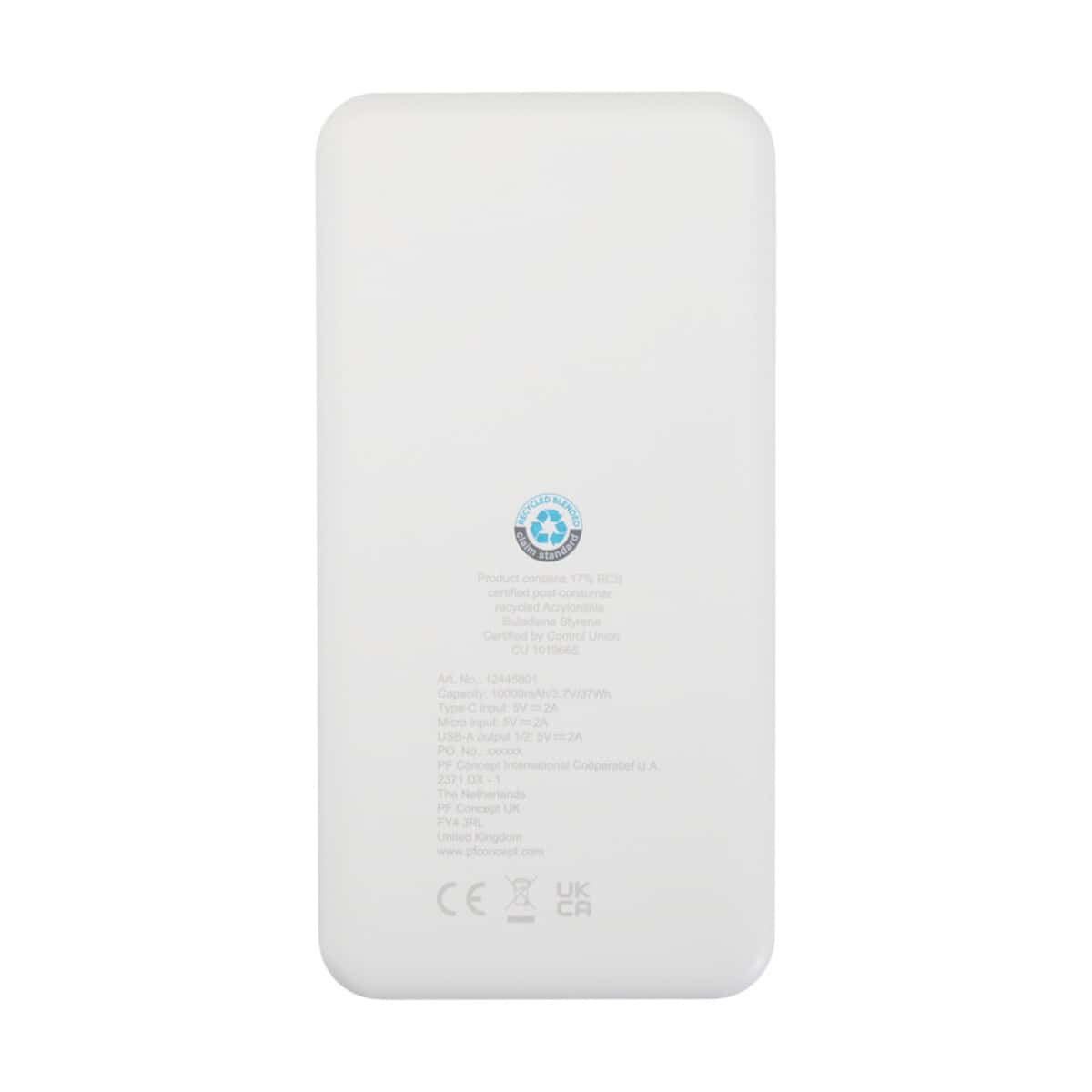 Intan powerbank o pojemności 10 000 mAh i mocy 10 W z tworzyw sztucznych pochodzących z recyklingu