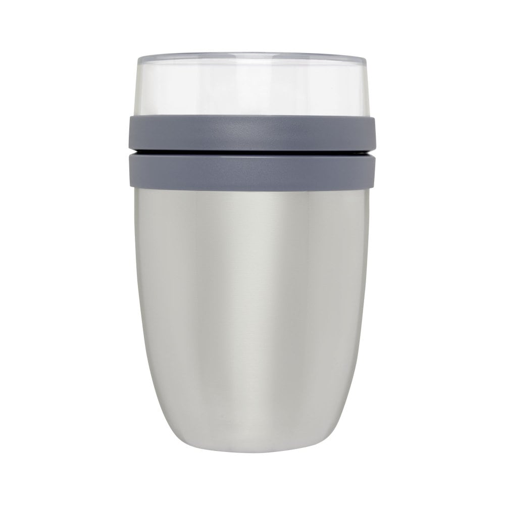 Izolowany pojemnik na lunch z dwiema komorami to praktyczny sposób na oddzielenie składników. Każda komora posiada własną pokrywkę, dzięki czemu składniki nie mieszają się. Utrzymuje temperaturę potraw gorących do 8 godzin lub zimnych do 12 godzin. Aby utrzymać temperaturę zaleca się przepłukanie pojemnika na lunch gorącą lub lodowatą wodą. Górny pojemnik ma pojemność 200 ml, a dolny 500 ml, co oznacza, że może pomieścić około 75 gramów żywności w formie stałej. Wykonany jest z trwałego materiału – zewnętrzna strona pozostaje chłodna i sucha. Poleca się mycie ręczne, a plastikowe elementy pokrywki można myć w zmywarce. Jest wodoszczelny i wolny od BPA.