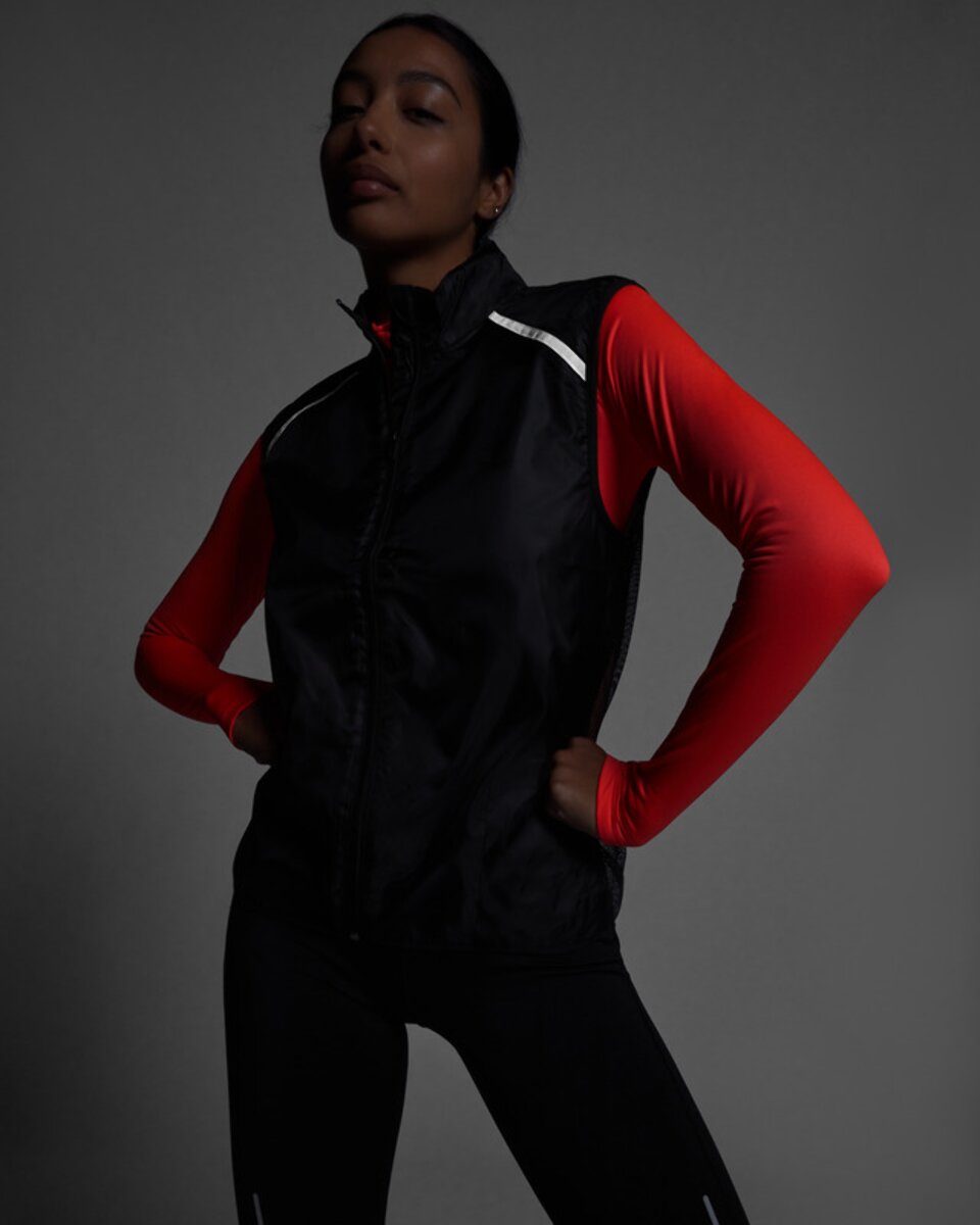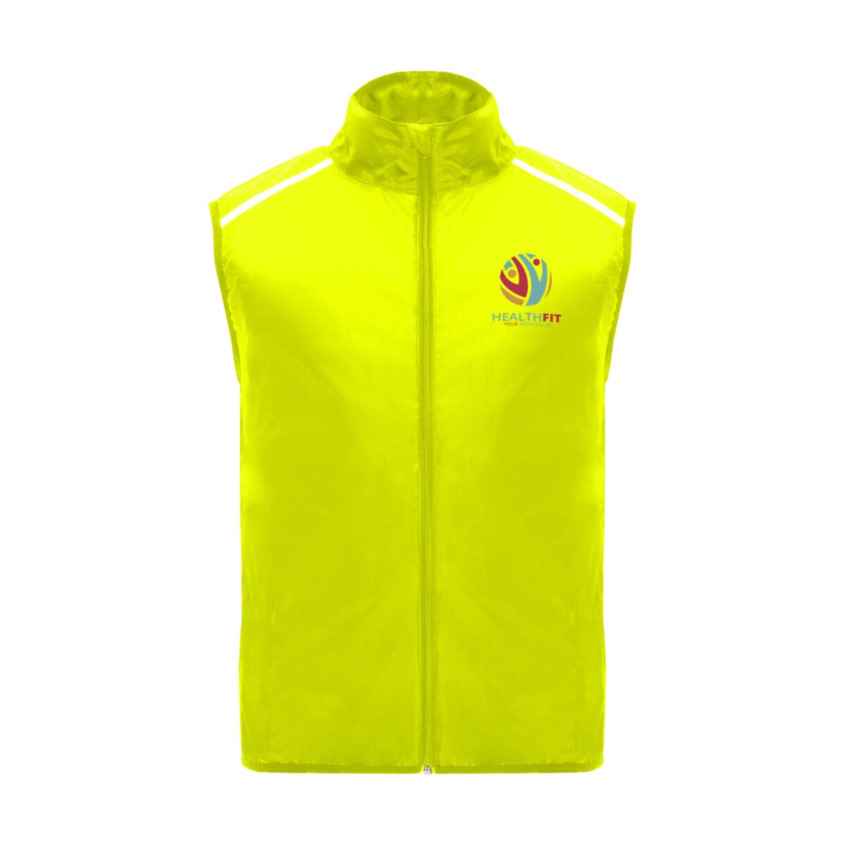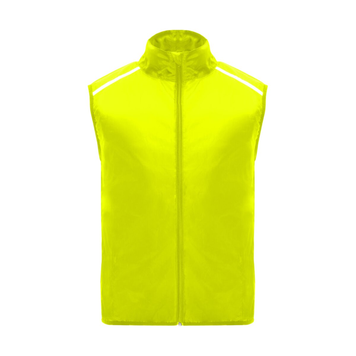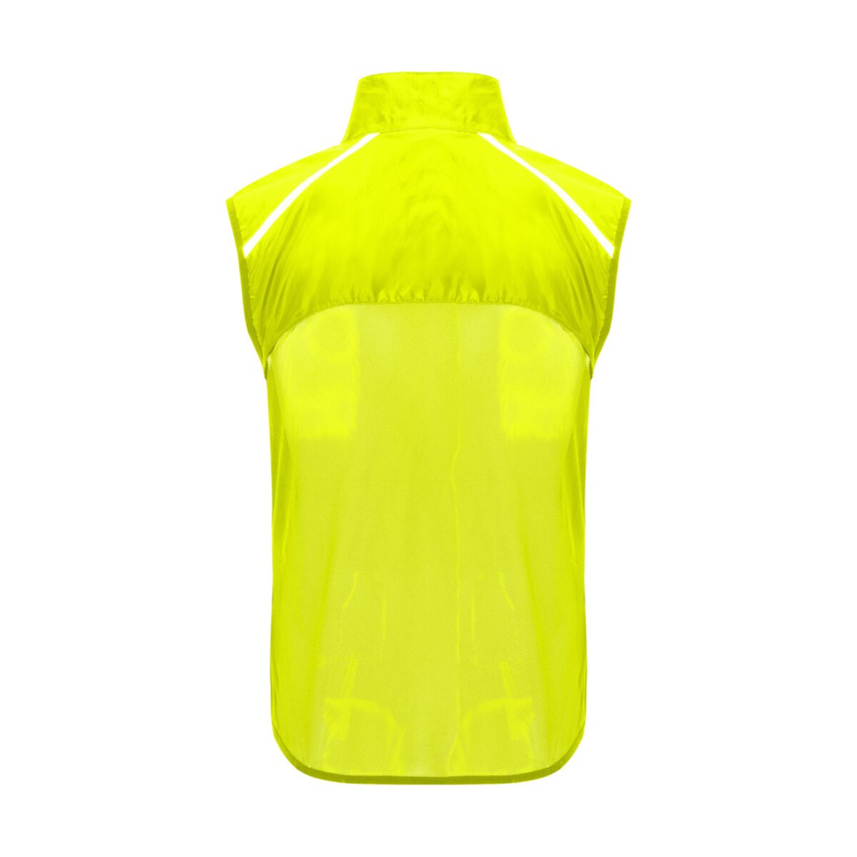 Wiatroszczelny i oddychający. Zamek błyskawiczny z przodu z dopasowaną ochroną podbródka. Elastyczne wiązanie pod pachami i u dołu. Dolna część pleców z mikroperforowanego materiału. Dobrze widoczne detale na górze, z przodu i z tyłu. Kieszeń z elastycznym paskiem do przechowywania kamizelki i noszenia jej na nadgarstku. Usuwalna etykieta.