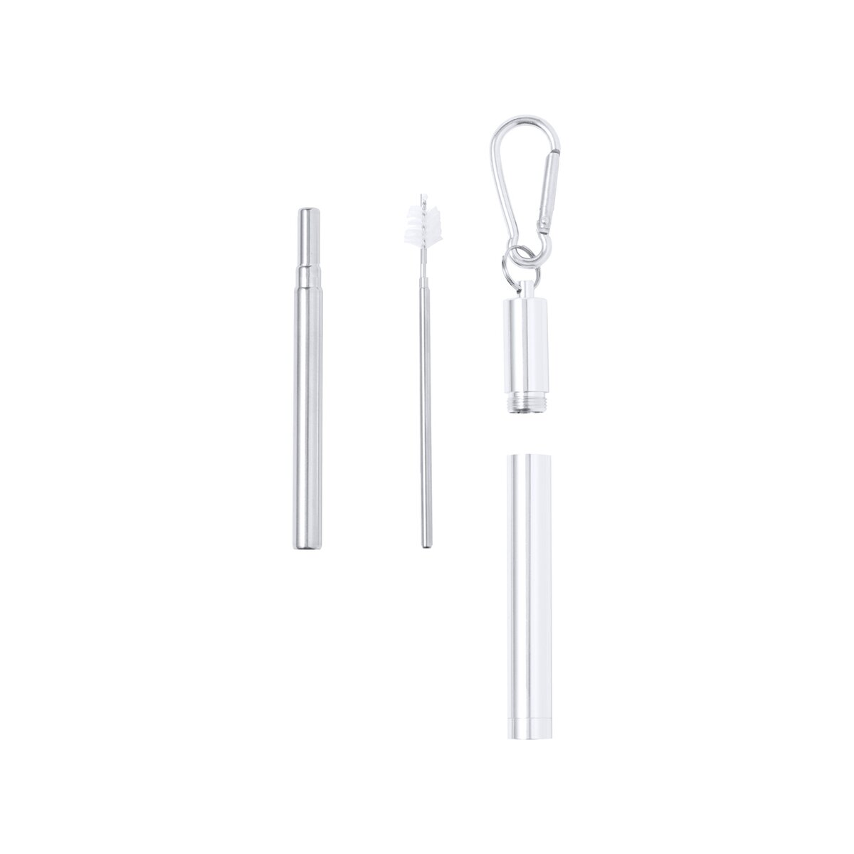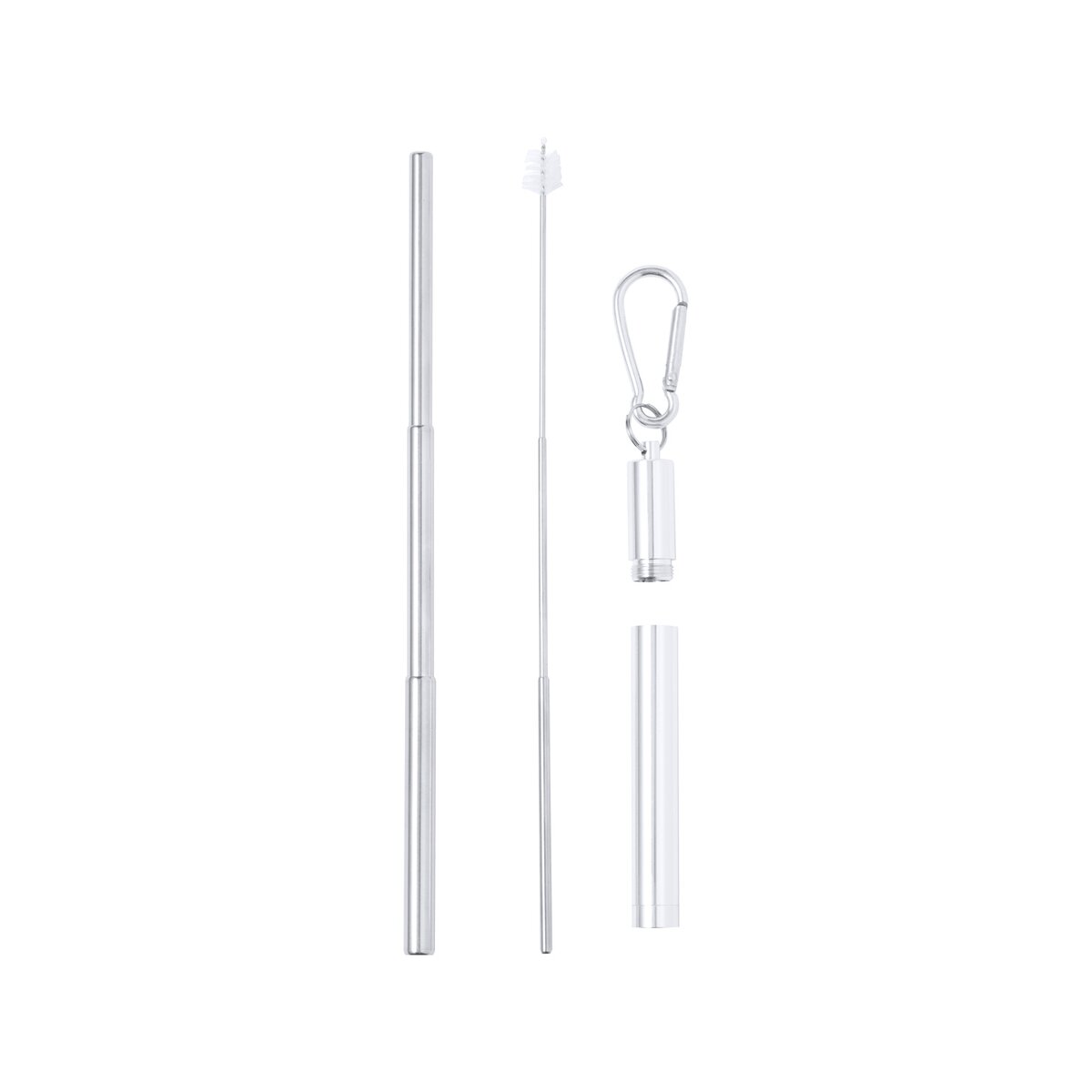 Każdy zestaw zawiera składaną słomkę o wymiarach ø14×123 mm oraz teleskopową szczoteczkę do czyszczenia, co ułatwia jej higieniczne użytkowanie na co dzień. Dodatkowo, zestaw jest wyposażony w etui z karabińczykiem, wykonane z aluminium, co pozwala na łatwe i bezpieczne przenoszenie. Srebrny kolor nadaje słomkom elegancki wygląd, który będzie pasować do każdego wnętrza i stylu serwowania.