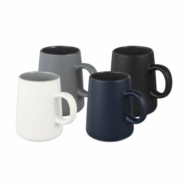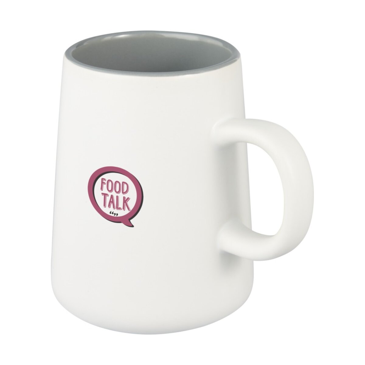 Ceramiczny kubek Joe to matowa powierzchnia z błyszczącym wnętrzem i wygodnym, okrągłym uchwytem. Jego pojemność wynosi aż 450 ml, a wszystkie metody nadruku są odporne na mycie w zmywarce. Dodatkowo, został zapakowany w kartonowe pudełko prezentowe, wykonane z materiałów pochodzących z recyklingu.