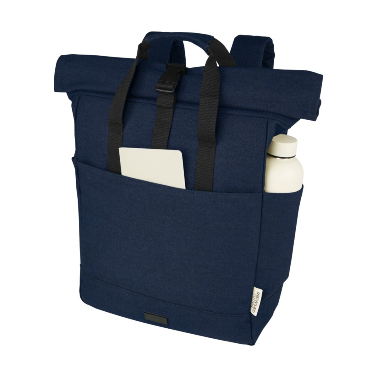 Wykonany z bardzo trwałych i ekologicznych materiałów, płótna z recyklingu z certyfikatem GRS i podszewki z tworzywa RPET z certyfikatem GRS, plecak Joey inspirowany produktami detalicznymi ma dedykowane etui na tablet wraz z wyściełaną przegrodą na laptopa 15 cali. Plecak ten ma również 2 boczne kieszenie na bidon i jedną dużą przednią kieszeń zapinaną na suwak, a także zapinany na suwak otwór na rolce dla maksymalnej pojemności i bezpieczeństwa. 2 wzmocnione uchwyty parciane sprawiają, że jest łatwy i wygodny w noszeniu jako torba biznesowa. Ozdobna metalowa płytka może sprawić, że logo będzie świecić dzięki subtelnemu i matowemu wykończeniu.