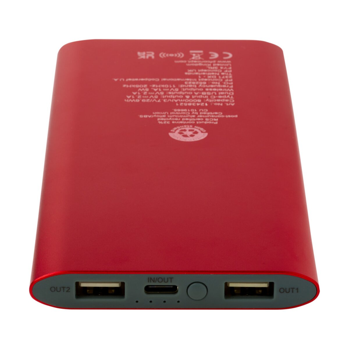 Power bank z portem wejścia/wyjścia typu C i 2x portami USB-A, co oznacza, że można ładować 3 urządzenia jednocześnie. Nadaje się także do bezprzewodowego ładowania o mocy 5 W dla wszystkich urządzeń obsługujących Qi. Powerbank wyposażony jest w akumulator litowo-polimerowy o pojemności 8000 mAh, który zapewnia całkowitą moc wyjściową wynoszącą maks. 10 W. Ten powerbank jest wykonany w 28% z tworzyw sztucznych pochodzących z recyklingu z certyfikatem RCS. Dostarczany z kablem ładującym TPE typu C na USB-A.