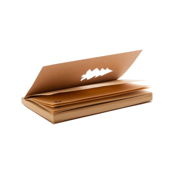 Okładka notesu zdobi wykrojona choinka, która wprowadza w nastrój świąteczny, będąc jednocześnie subtelną, ale wyrazistą ozdobą. Naturalny kolor i rozmiar 90×140×9 mm czynią go zarówno praktycznym, jak i estetycznym przedmiotem, idealnym do noszenia ze sobą każdego dnia.