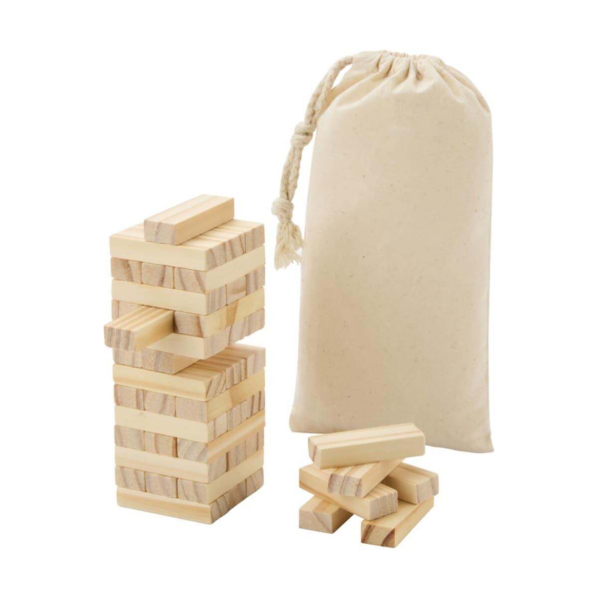Jumble gra polegająca na przewracaniu drewnianej wieży w kategorii Gry z logo oraz Gry plażowe z logo świetnie sprawdzi się w promocji branży turystycznej, hotelarskiej, gastronomicznej, a także firm organizujących eventy rodzinne czy targi edukacyjne. Dzięki eleganckiemu bawełnianemu woreczkowi całość prezentuje się wyjątkowo, tworząc produkt wprost stworzony dla Twojej firmy, by podkreślić ekologiczny charakter marki.