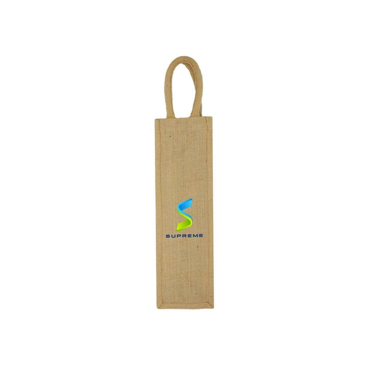 Jutowa torba na butelkę | Edie to znakomity sposób na połączenie ekologicznej elegancji z praktycznym nośnikiem logo oraz efektownym nadrukiem promującym markę. Wykonana z naturalnej, laminowanej juty, stanowi wytrzymałe opakowanie na jedną butelkę wina, oliwy lub innego napoju premium, podkreślając przy tym unikatowy charakter prezentu. Dzięki wymiarom 36 × 10 × 10 cm oraz wygodnym rączkom o średnicy 1 cm i długości 25 cm, torba bez trudu utrzyma ciężar szklanej butelki, a jej sztywne ścianki chronią zawartość w trakcie transportu. Naturalny kolor świetnie eksponuje firmową grafikę, zamieniając prosty produkt w stylowy, ekologiczny gadżet 😊.
