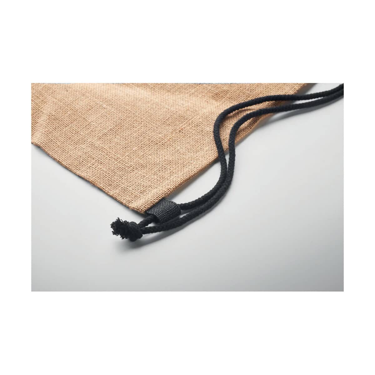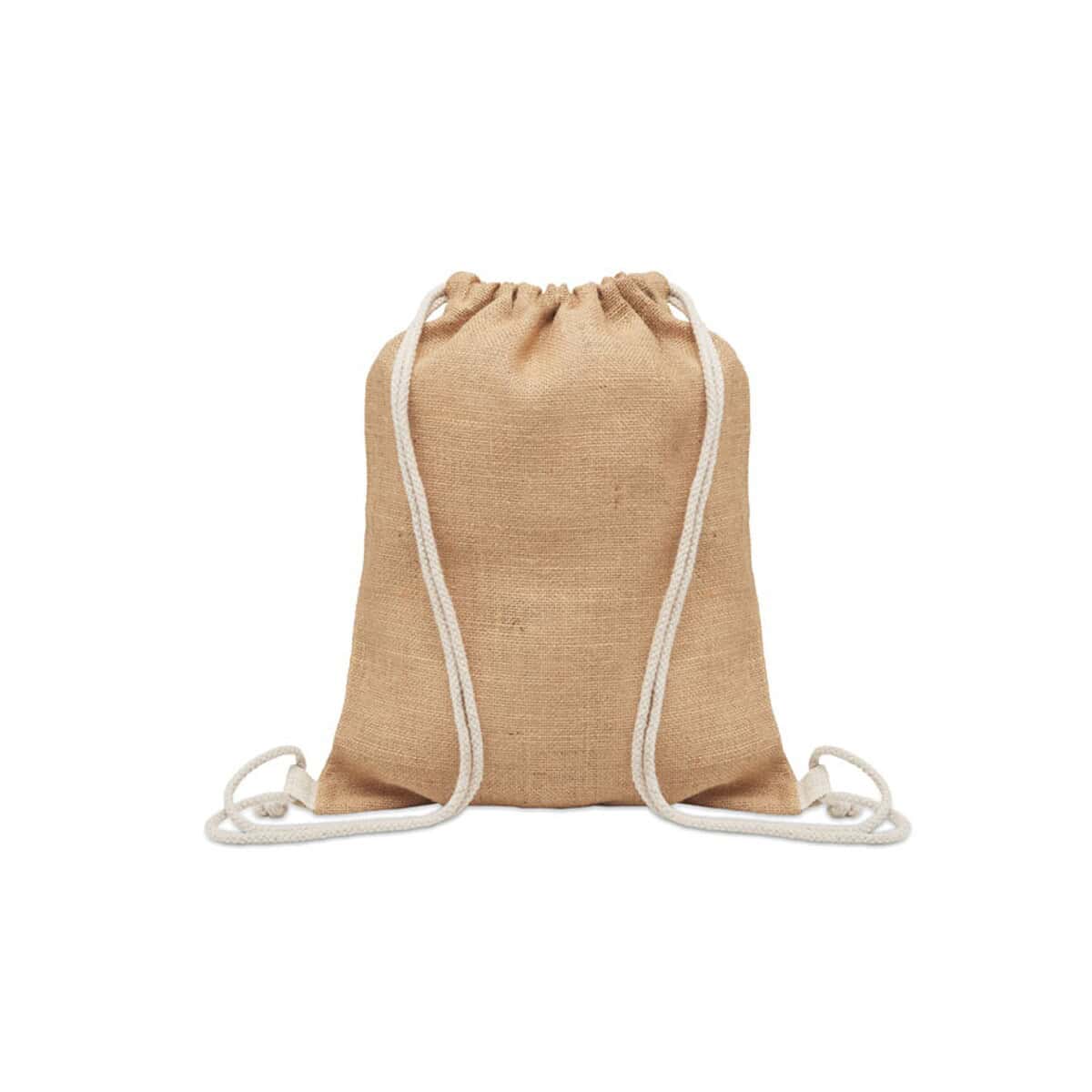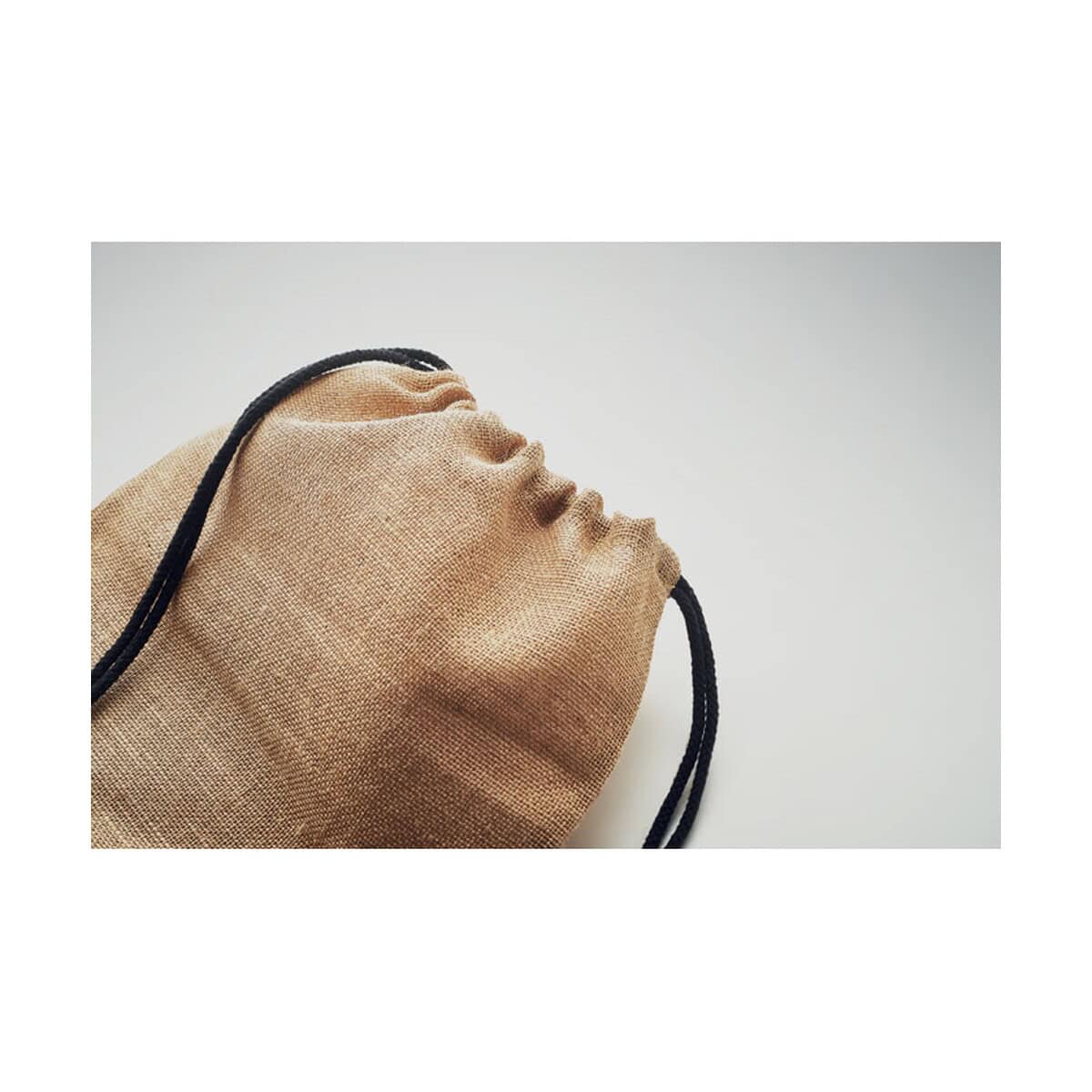 Jutowy worek ze sznurkiem FUKURO będzie najlepszy dla osób ceniących funkcjonalność i estetykę: studentów, pracowników biurowych, miłośników zdrowego trybu życia. Może służyć jako worek na buty sportowe, pojemnik na owoce i warzywa, pakowna torba plażowa albo stylowe opakowanie prezentu firmowego. Dodaj efektowny reklamowy nadruk, aby stworzyć niepowtarzalny nośnik marki dla Twojej firmy i przyciągnąć uwagę każdego klienta.