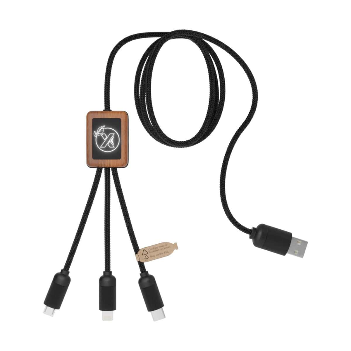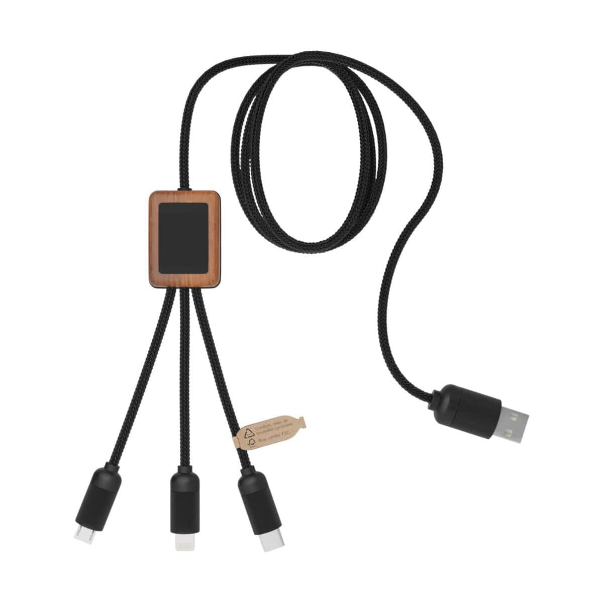 Kabel bambusowy 3 w 1 SCX.design C29 to niezwykle praktyczny, a zarazem stylowy gadżet, który wzbogaci codzienne doświadczenia technologiczne zarówno w biurze, jak i w domu. Wykonany z połączenia drewna bambusowego oraz tworzyw z recyklingu PET i ABS jest przyjazny środowisku i wpisuje się w nowoczesne trendy eko – dzięki temu będzie świetnym ambasadorem wartości dla Twojej firmy. Kabel bambusowy 3 w 1 SCX.design C29 posiada trzy złącza – USB-C, micro USB i iPhone – co czyni go wręcz znakomitym rozwiązaniem do ładowania większości urządzeń mobilnych. Standardowa długość 1 m zapewnia komfort użytkowania przy biurku, w samochodzie czy podczas podróży ✈️.