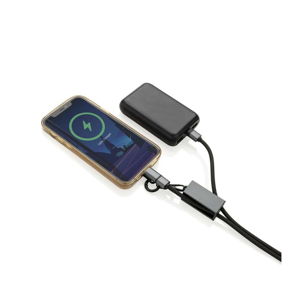 Dzięki praktycznej funkcji smyczy produkt jest perfekcyjny dla osób, które chcą mieć smartfon zawsze pod ręką – od kurierów przez handlowców, po studentów i uczestników konferencji. Wersja 2 w 1 eliminuje plątaninę przewodów w torbie, a solidne aluminium z recyklingu gwarantuje trwałość w podróży. Wystarczy dodać logo, a otrzymujesz wyśmienite akcesorium promocyjne dla Twojej firmy, które codziennie będzie przypominać odbiorcom o Twojej marce.