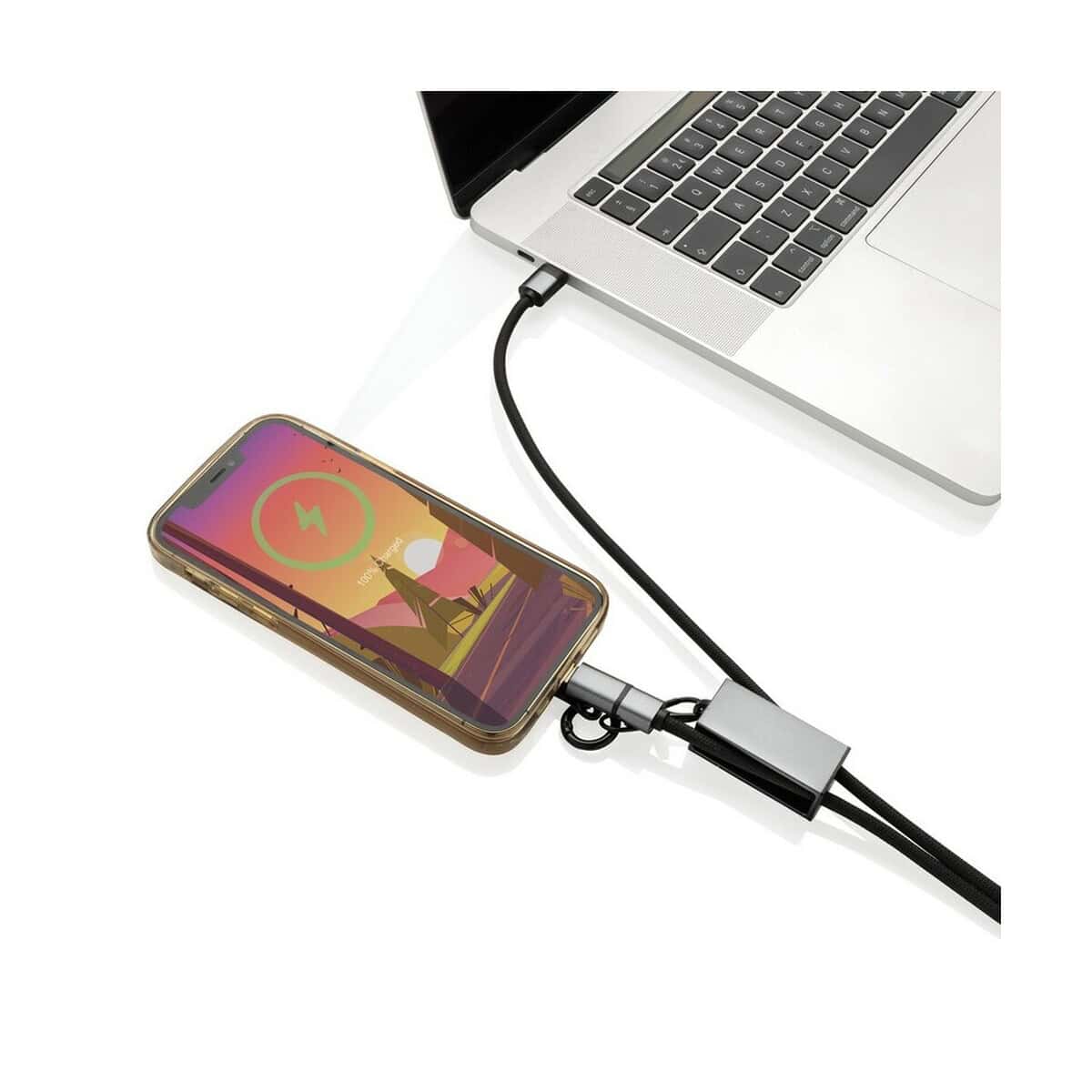Cechy produktu: długość 70 × 2,1 cm, podwójna wtyczka USB-C/iOS, materiał rPET i aluminium z recyklingu z certyfikatem RCS, moc do 60 W, kolor szary, funkcja smyczy. Ten poręczny gadżet reklamowy łączy trwałość z ekologiczną świadomością, a przy tym prezentuje się stylowo 😎. Nie zwlekaj – wybierz go jako reklamowe narzędzie w kampanii i pokaż, że innowacja oraz ekologia mogą iść w parze dla Twojej firmy.
