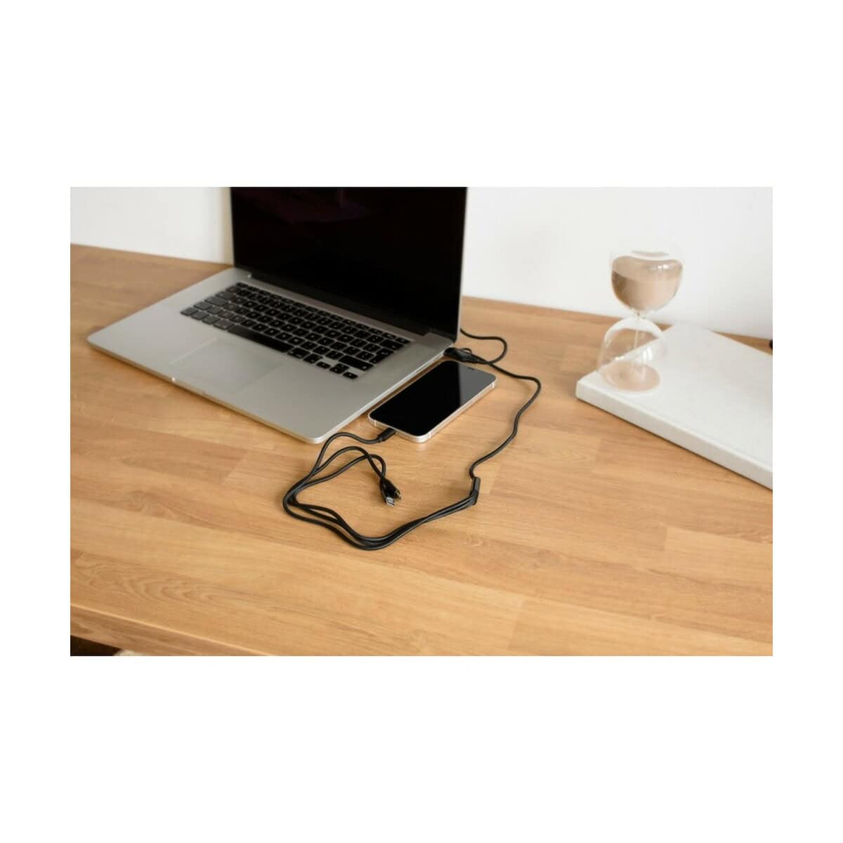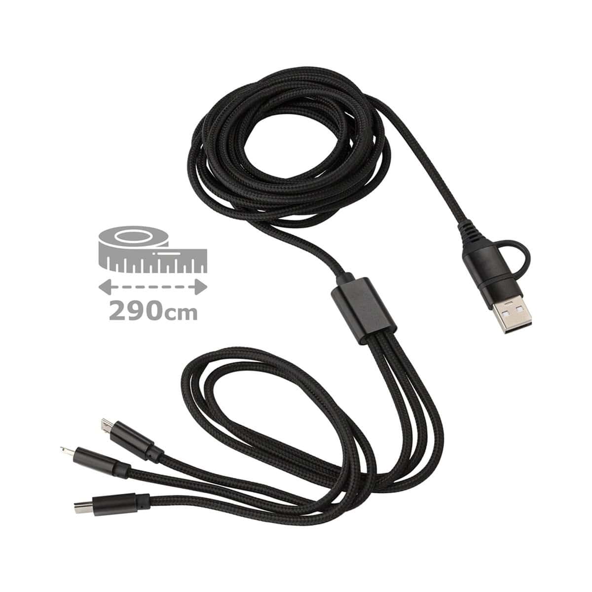 Kabel do ładowania to znakomity, wielofunkcyjny gadżet, który sprawdzi się zarówno w biurze, jak i w podróży. Ten model łączy w sobie aż cztery złącza – USB, USB-C, micro USB oraz końcówkę kompatybilną z urządzeniami iOS, dzięki czemu użytkownik zyskuje pełną swobodę ładowania praktycznie każdego sprzętu 🔌. Kabel do ładowania o długości 290 cm gwarantuje komfort korzystania, nawet gdy gniazdko znajduje się daleko od stanowiska pracy 🙂. Czarny kolor podkreśla elegancki charakter, a solidne materiały – metal i pvc – zapewniają wytrzymałość na lata.