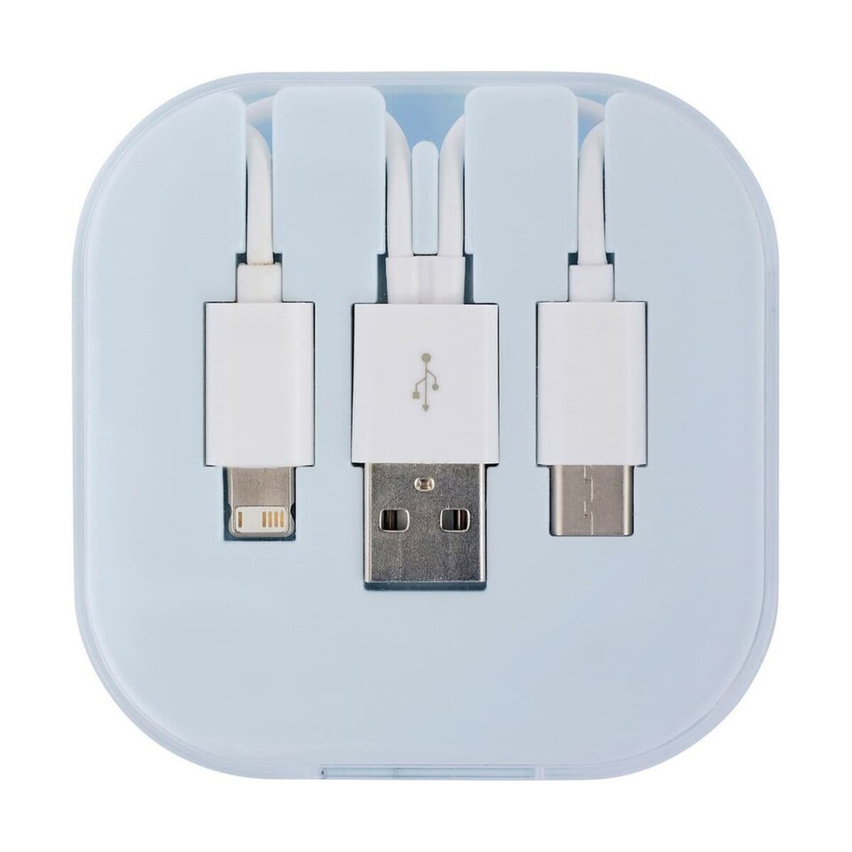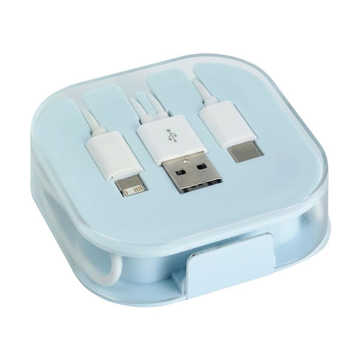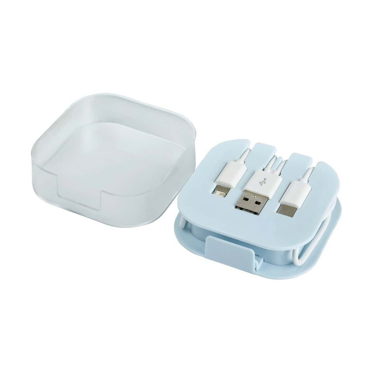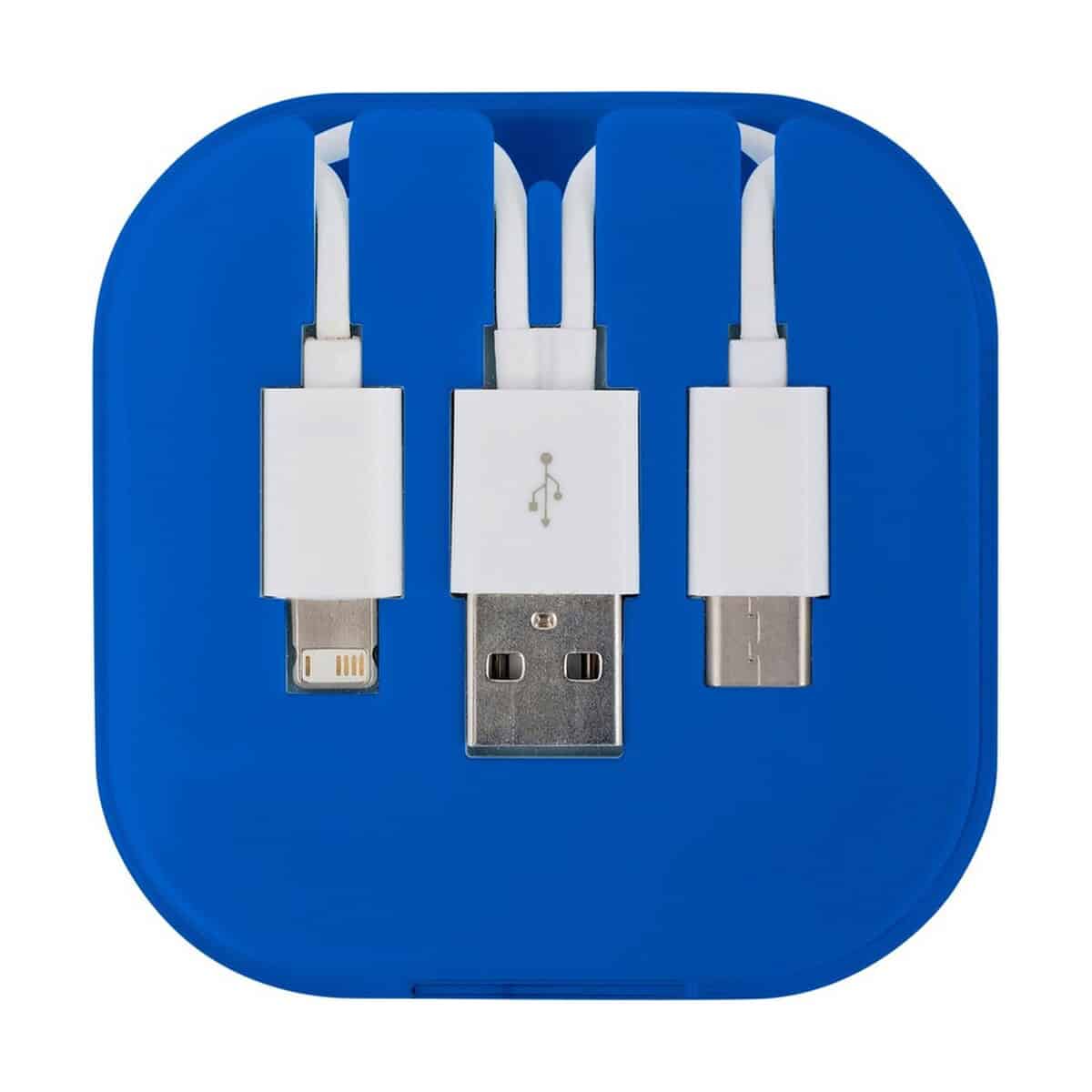 Kabel do ładowania o długości ok. 24 cm to wszechstronny, kompaktowy i niezwykle wygodny gadżet, który sprawdzi się wszędzie tam, gdzie liczy się szybkie zasilanie urządzeń oraz wyrazista ekspozycja Twojego logo. W komplecie znajdują się aż trzy końcówki – USB, Typ-C oraz 2 w 1 (micro USB + kompatybilna z urządzeniami iOS). Dzięki temu Kabel do ładowania obsługuje większość smartfonów, tabletów, powerbanków i słuchawek dostępnych na rynku. Wymiary samego pudełka to 7 × 7 × 1,9 cm, a materiał wykonania – solidne ABS, PVC oraz PS – gwarantuje trwałość i odporność na codzienne użytkowanie. Świeże, uniwersalne kolory: niebieski oraz biały, znakomicie podkreślą Twój firmowy styl 🙂