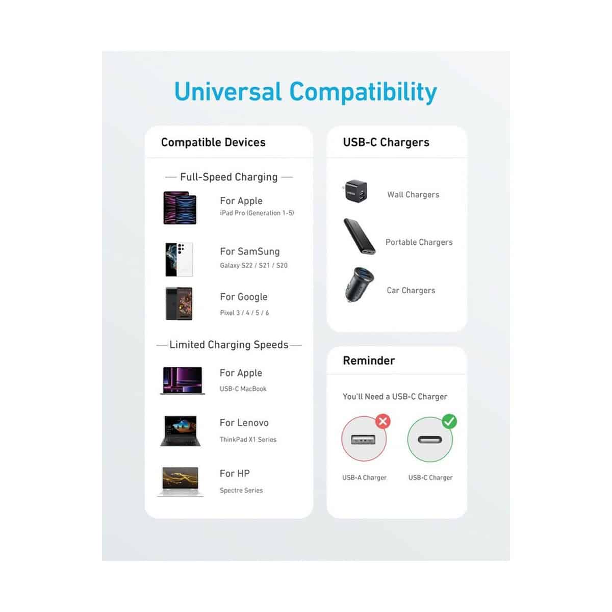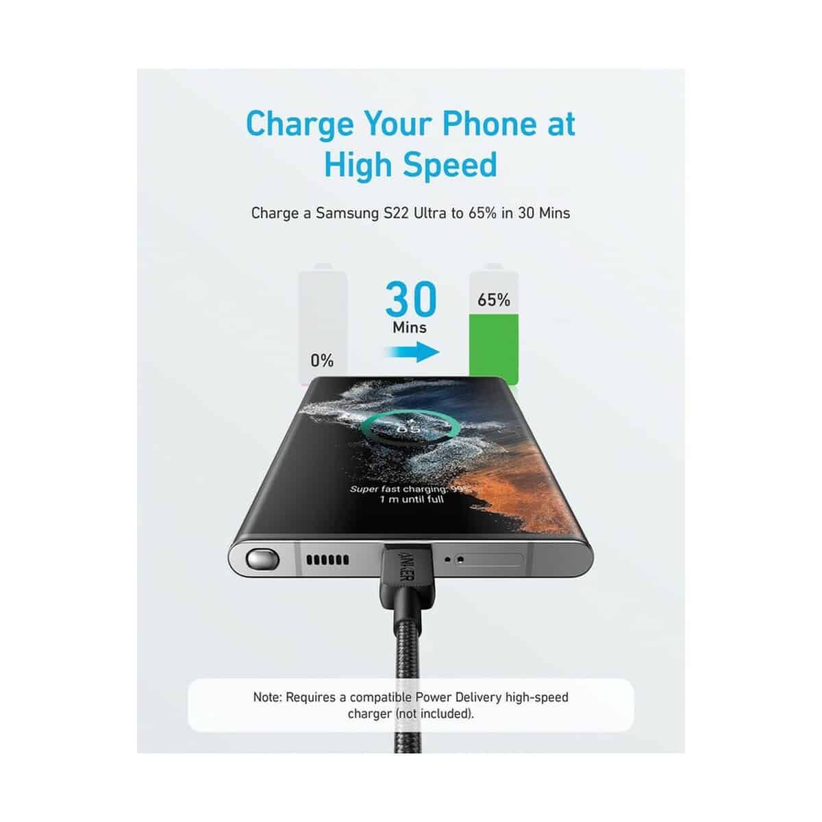 Kabel do ładowania 60W Anker to nowoczesny, wytrzymały i uniwersalny przewód USB-C – USB-C, który spełni oczekiwania nawet najbardziej wymagających użytkowników. Dzięki mocy ładowania do 60W błyskawicznie naładuje laptopy, smartfony oraz tablety, a przy prędkości transferu danych obsłuży szybkie przesyłanie plików, zdjęć i filmów. Pleciony nylon, z którego został wykonany o długości 180 cm i wymiarach 180 × 1,2 × 0,6 cm, gwarantuje ogromną odporność na zginanie i przetarcia, co czyni go produktem długowiecznym oraz bezpiecznym. Szlachetny, szary kolor współgra z każdym urządzeniem, a elastyczny oplot zapobiega plątaniu się przewodu 🙂.