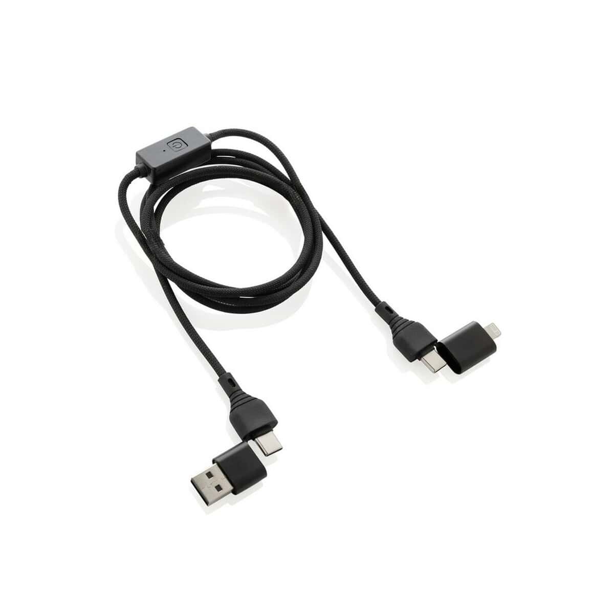 Kabel do ładowania 60W Datalock to znakomity, wielofunkcyjny gadżet technologiczny, który zachwyci zarówno specjalistów IT, jak i każdego użytkownika smart-urządzeń. Wyposażony w 4 w 1 końcówki – USB, 2 × USB-C oraz iOS – sprawia, że jednym przewodem obsłużysz większość współczesnych urządzeń. Moc do 60 W gwarantuje ekspresowe ładowanie laptopów, tabletów i telefonów, a innowacyjny przycisk do wyłączania transferu danych chroni Twoje pliki przed atakami z zewnątrz. Dzięki temu Kabel do ładowania 60W Datalock jest doskonałym wyborem dla branży bezpieczeństwa cyfrowego, fintechu oraz e-commerce, które chcą promować swoją dbałość o ochronę danych. 🔒