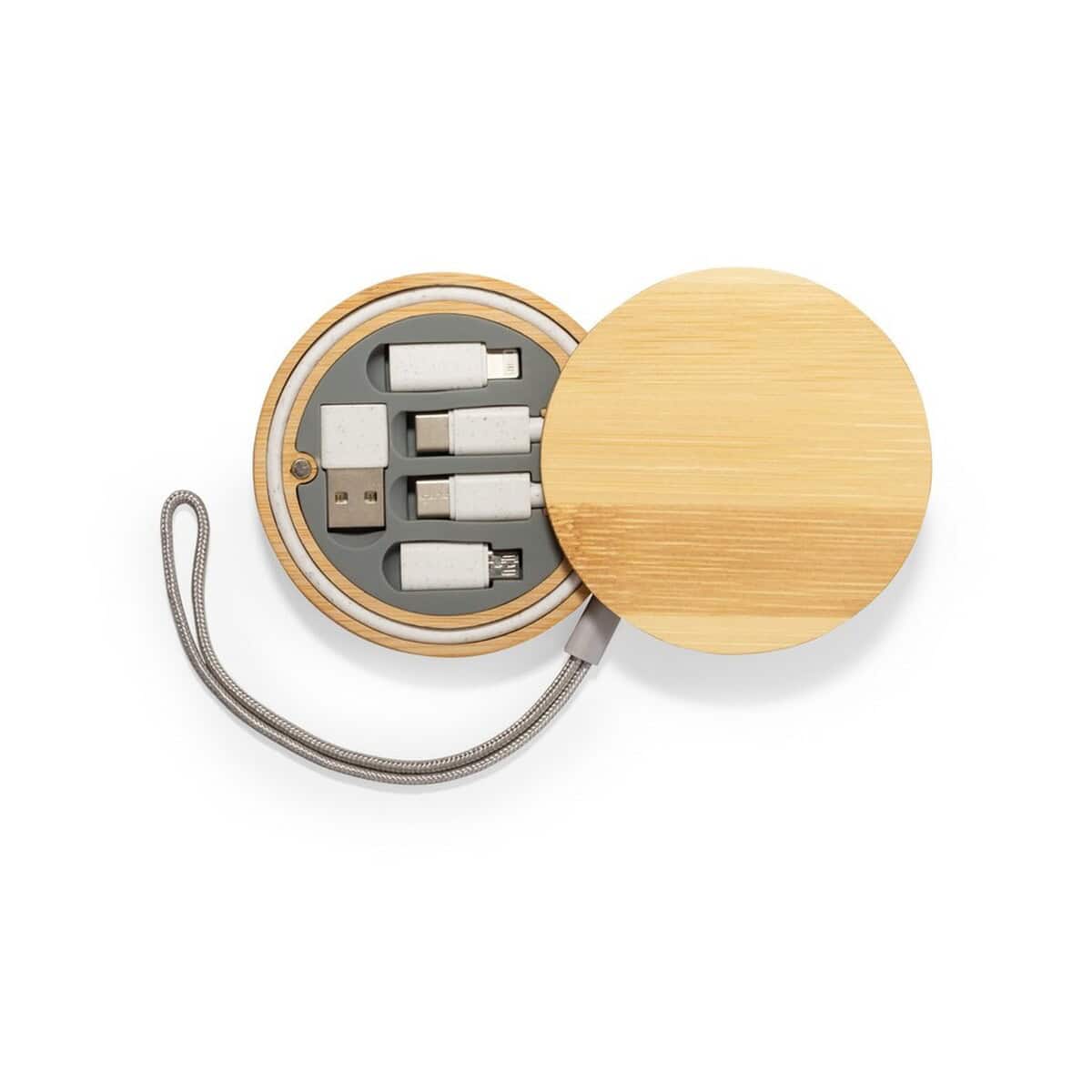 Kabel do ładowania i synchronizacji ze słomy pszenicznej, 3 adaptery w komplecie, bambusowe etui z zawieszką to nowoczesny, eco-friendly gadżet, który łączy w sobie funkcjonalność z troską o środowisko. Wykonany z naturalnego bambusa i włókien słomy pszenicznej, stanowi doskonały przykład, że technologia może iść w parze z ekologią. Eleganckie etui o wymiarach ø8 x 1,6 cm mieści przewód z dwiema końcówkami USB-C oraz 3 adaptery: micro USB, USB i kompatybilny z urządzeniami iOS, gwarantując napięcie 5V/3A. Dzięki praktycznej zawieszce przewód można przypiąć do kluczy lub plecaka, aby zawsze był pod ręką 🙂.