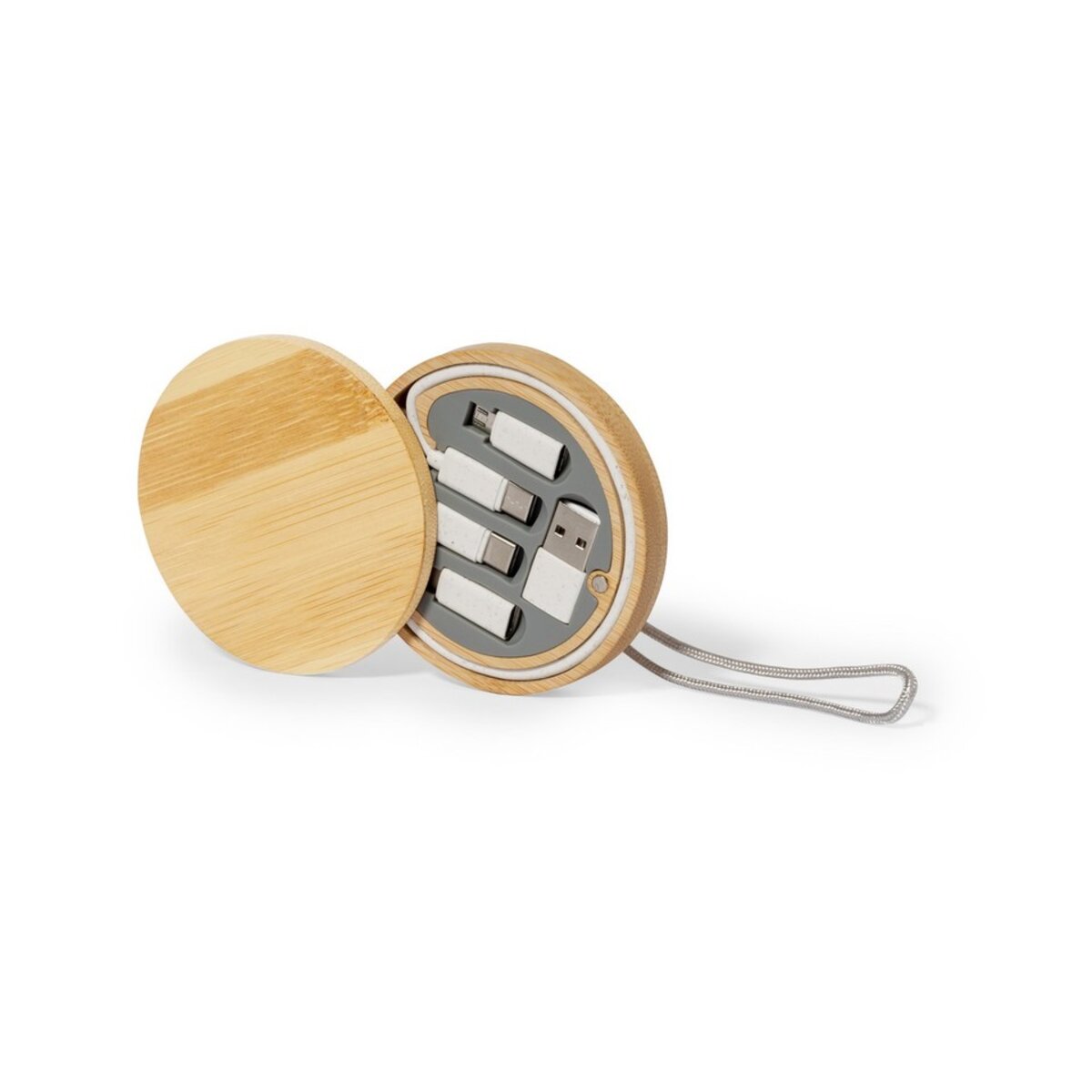 Dodatkowym atutem jest eleganckie i praktyczne etui wykonane z bambusa, które nie tylko chroni kabel, ale również może być znakomitym elementem brandingowym. Dzięki zawieszce z łatwością przymocujesz etui do torby lub plecaka, co sprawia, że nasz produkt jest idealny w podróży lub w pracy.