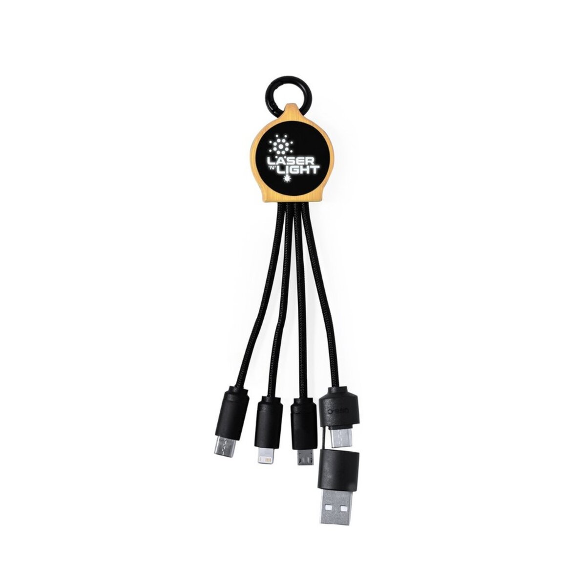 Kabel do ładowania z karabińczykiem, bambusowy element