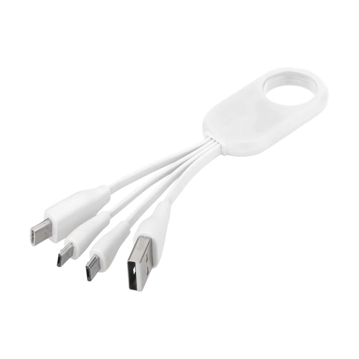 Obudowa z trwałego, odpornego na zarysowania Plastiku ABS gwarantuje długą żywotność, a neutralny biały kolor stanowi doskonałe tło pod firmowy nadruk lub logo. To sprawia, że Kabel do ładowania z końcówką USB typu C 4w1 Troup świetnie wpisuje się w kategorię Kable USB z logo i Huby USB z logo – jest perfekcyjnym nośnikiem identyfikacji wizualnej marki. Podczas codziennego użytkowania Twoje logo będzie widoczne na biurkach, w biurach podróży, na konferencjach czy w pociągu, budując rozpoznawalność i wzmacniając wizerunek.